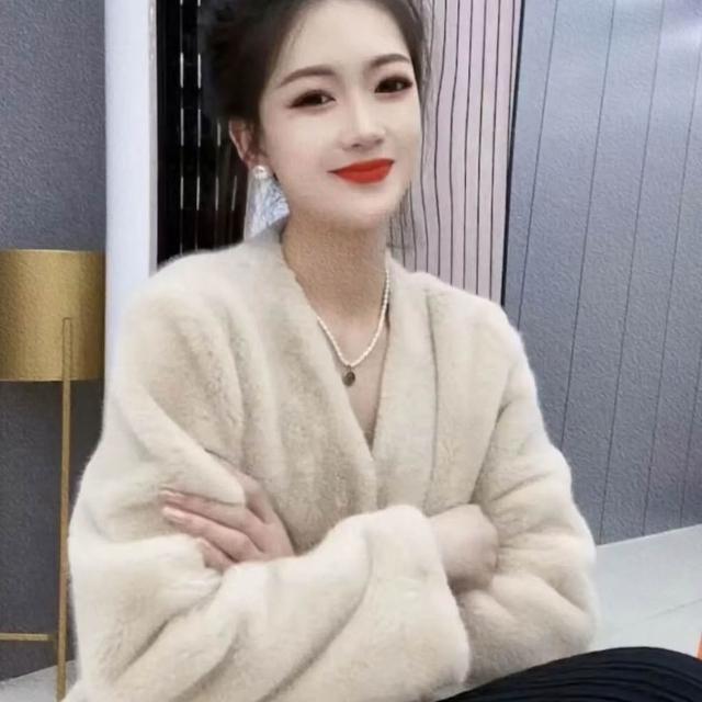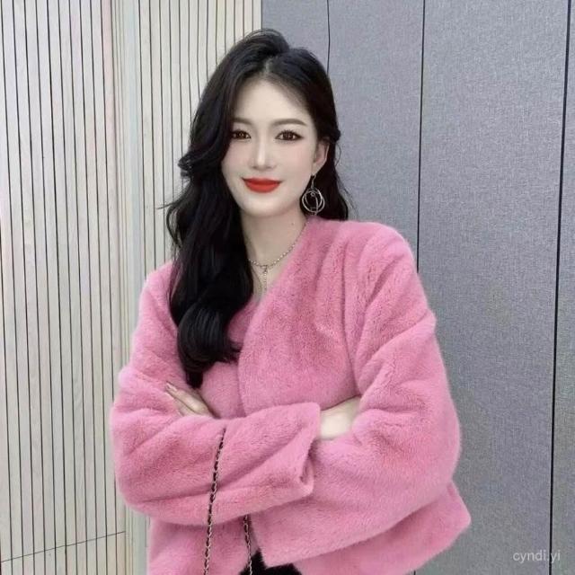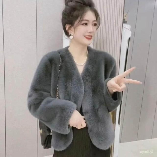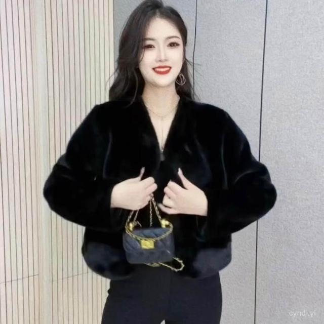 冬季水貂毛外套女 皮毛一體外套女冬季25新款氣質領環保水貂絨皮草短版毛毛外套 皮草外套 毛絨外套1011