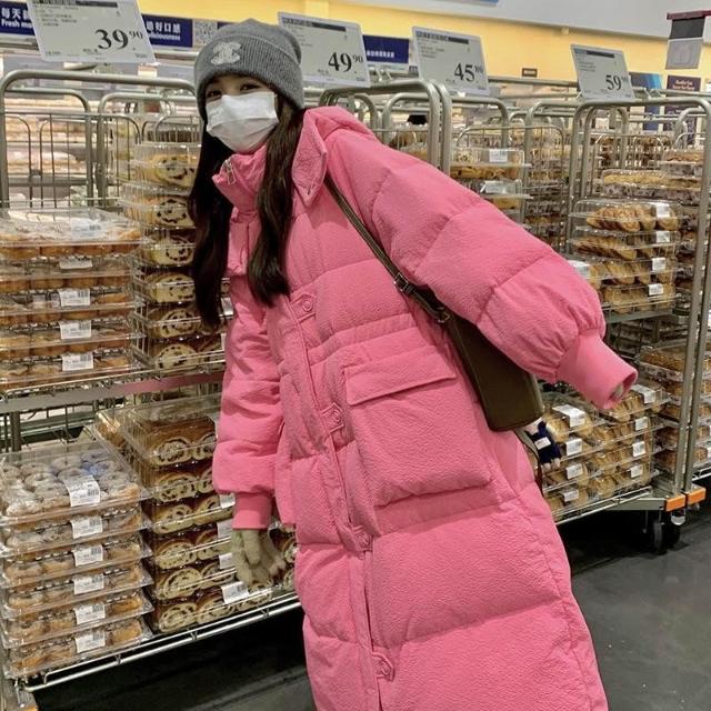 保暖外套 韓版 粉色長版羽絨服女2024冬季新款設計感時尚休閒加厚連帽中長版外套 羽絨外套連帽1126 KDQQ