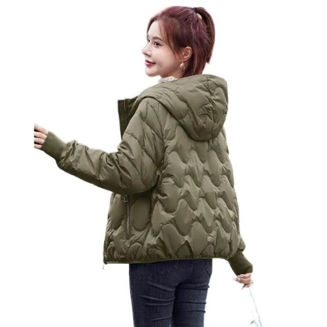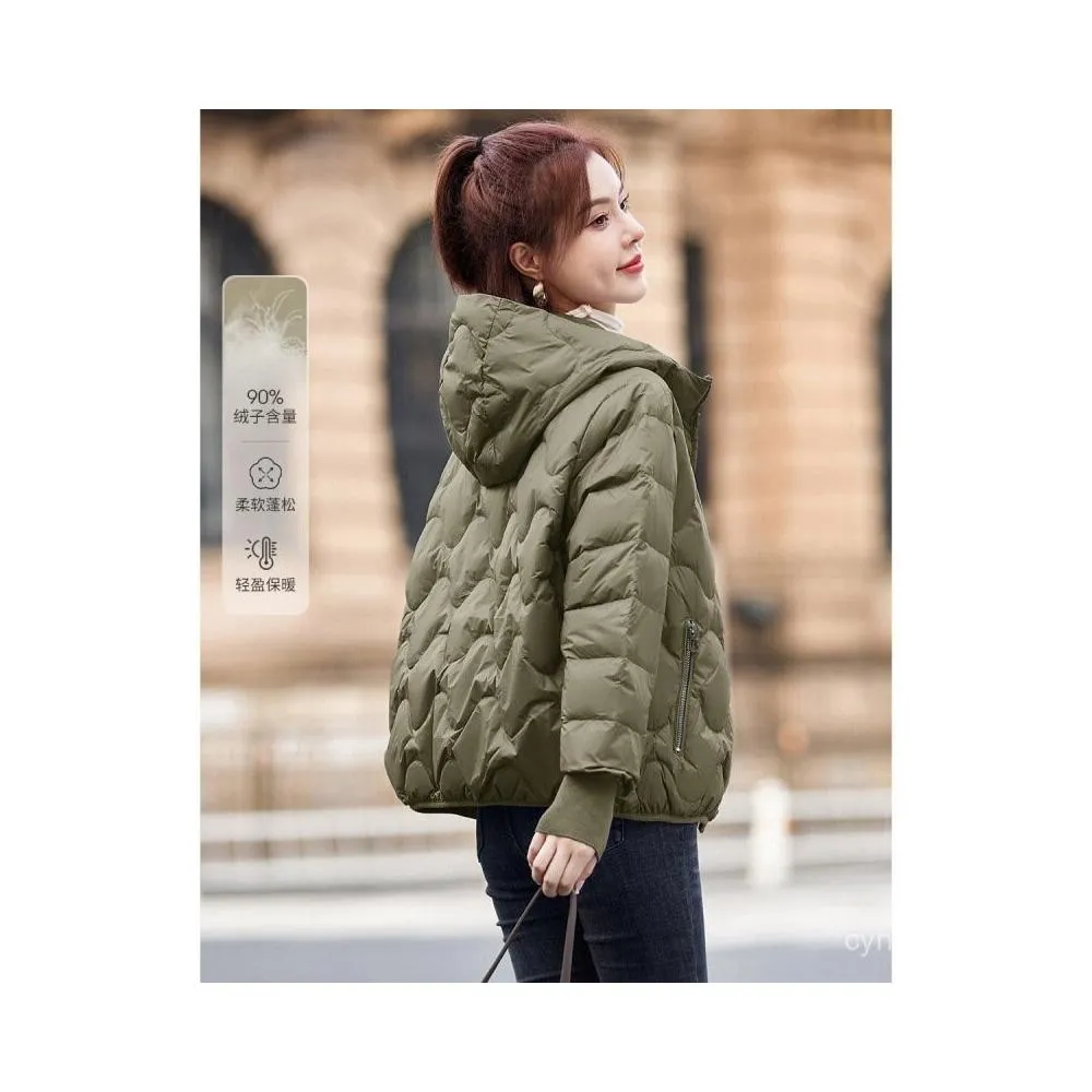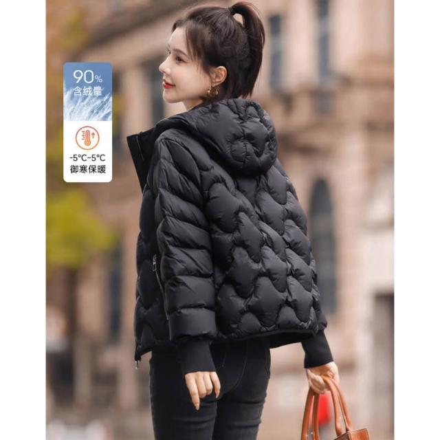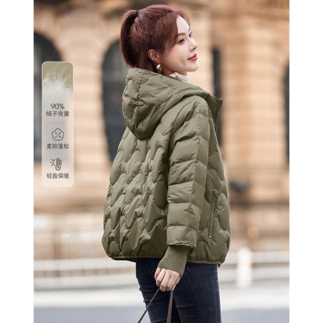 羽絨外套 2024年新款冬季女士韓版連帽純色洋氣短版羽絨服 防寒 保暖羽絨服 白鴨絨外套女生1121 QJSI