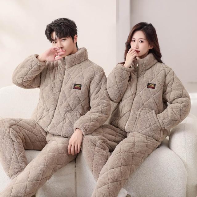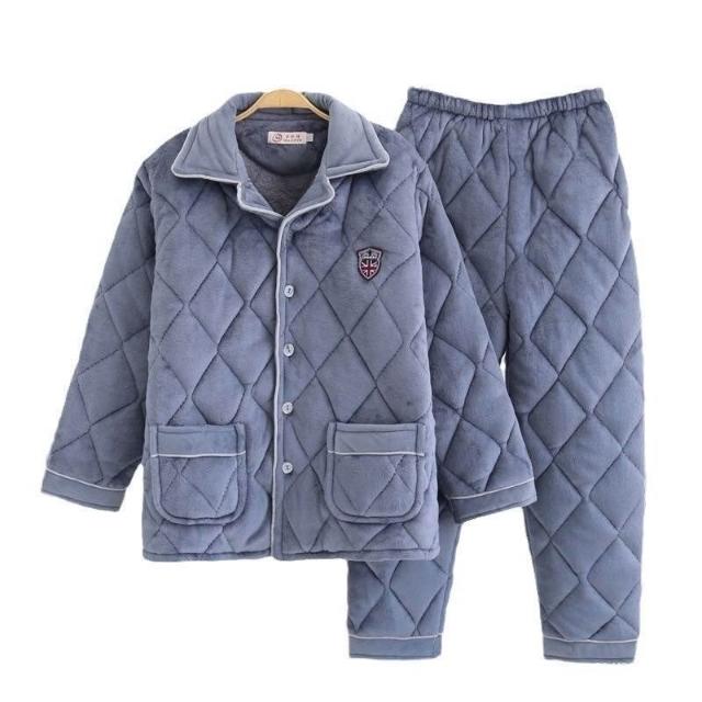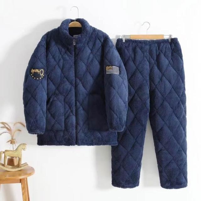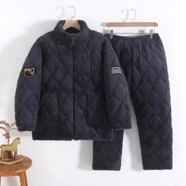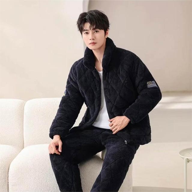 冬季加絨睡衣 睡衣男冬季加絨加厚法蘭絨三層夾棉男款保暖棉衣棉襖男士居服套裝 保暖 套裝10201021 1WBX