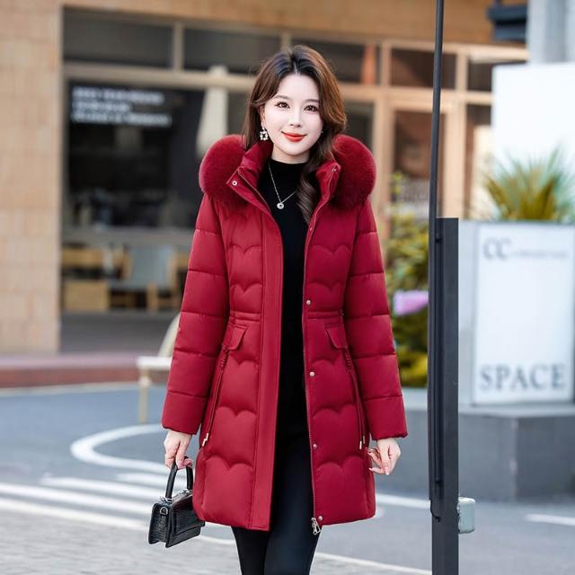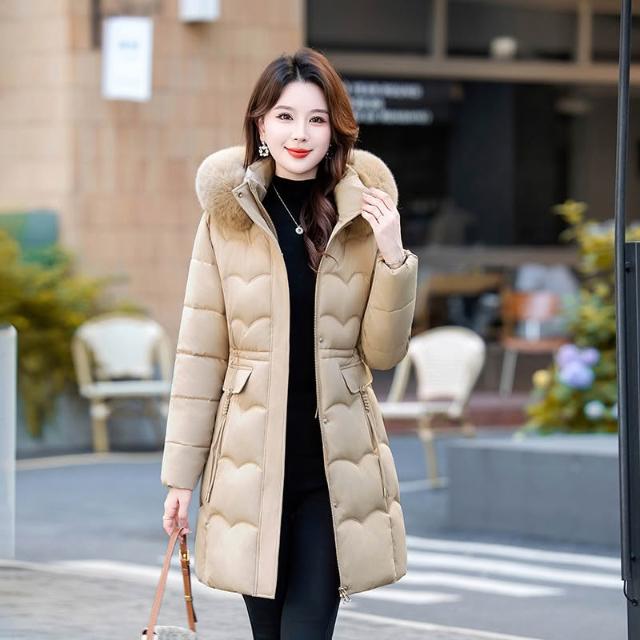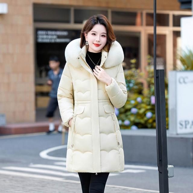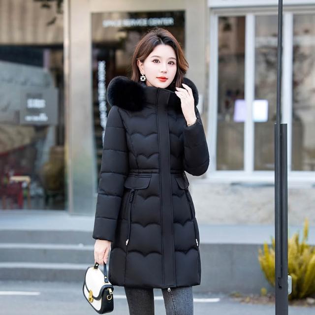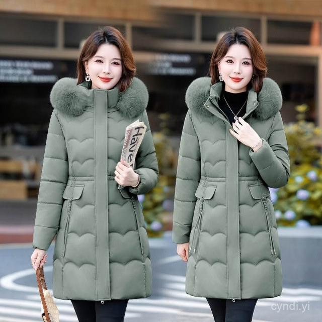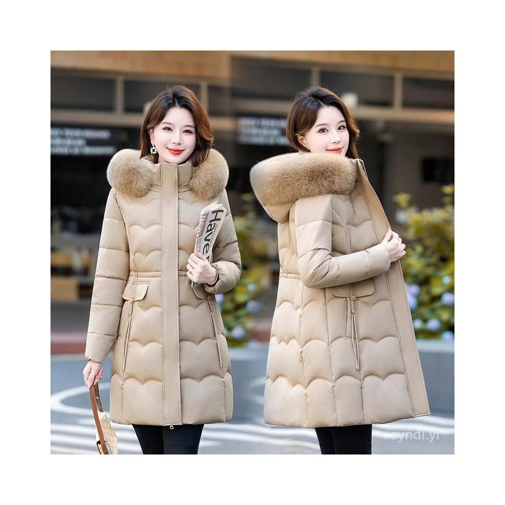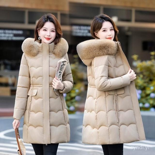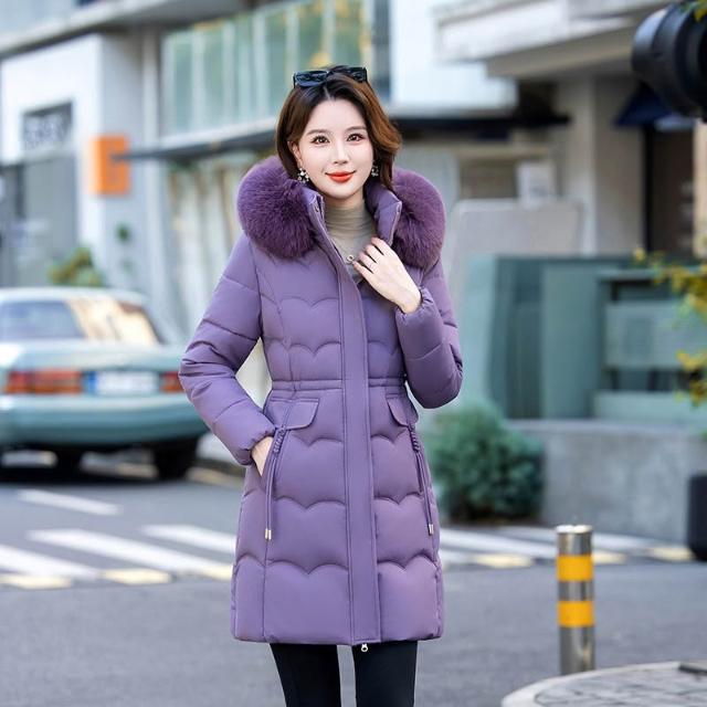 冬季毛領棉 可拆毛領和帽子新款棉襖25冬季中長版棉衣女大碼加厚羽絨棉外套 保暖 外套1021 RFOD