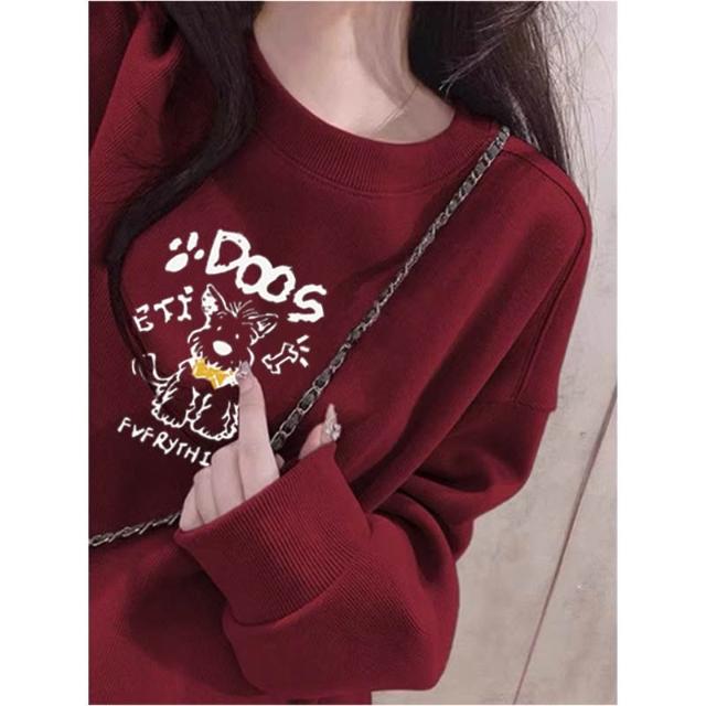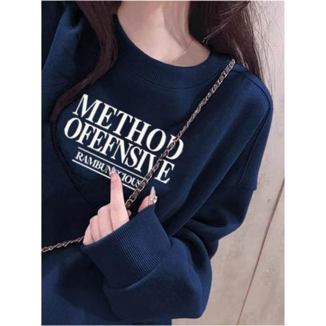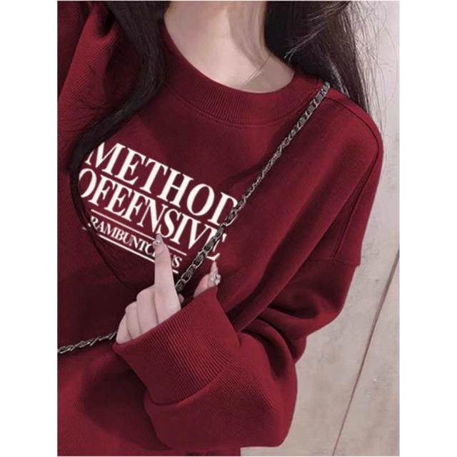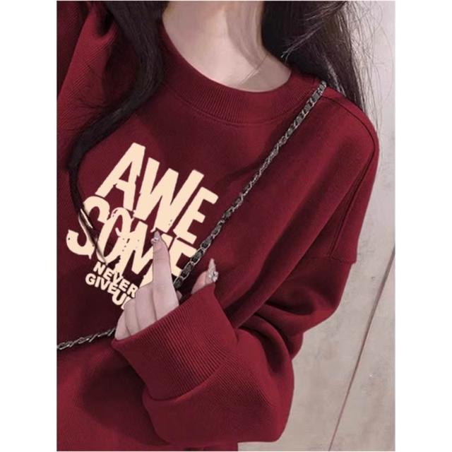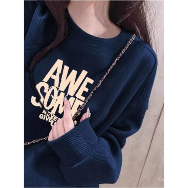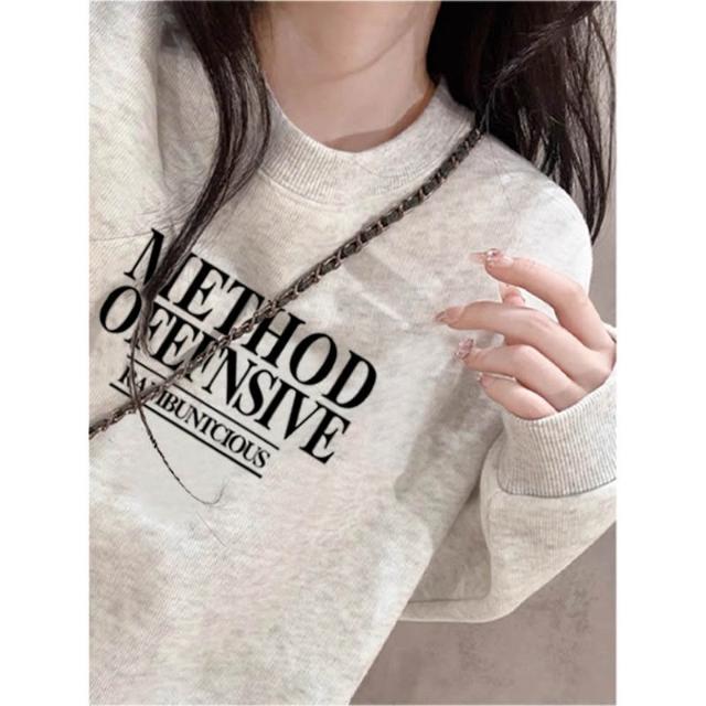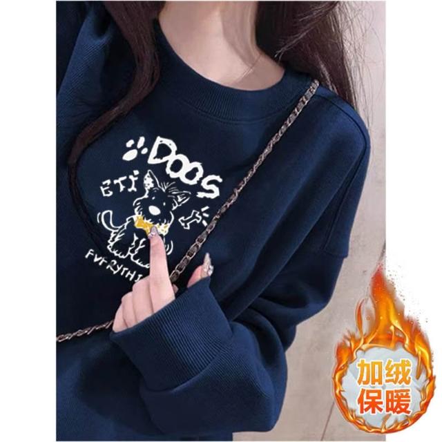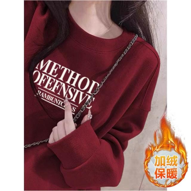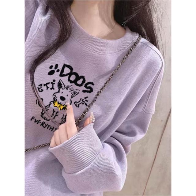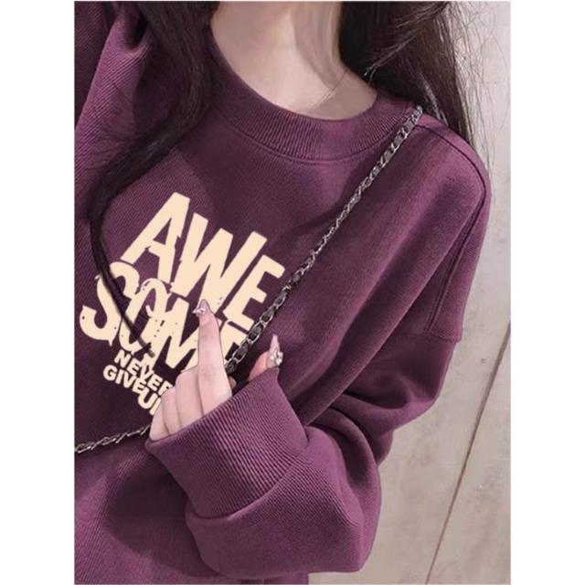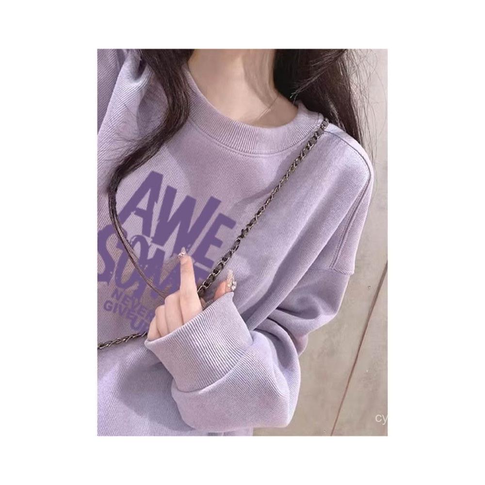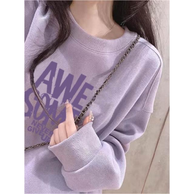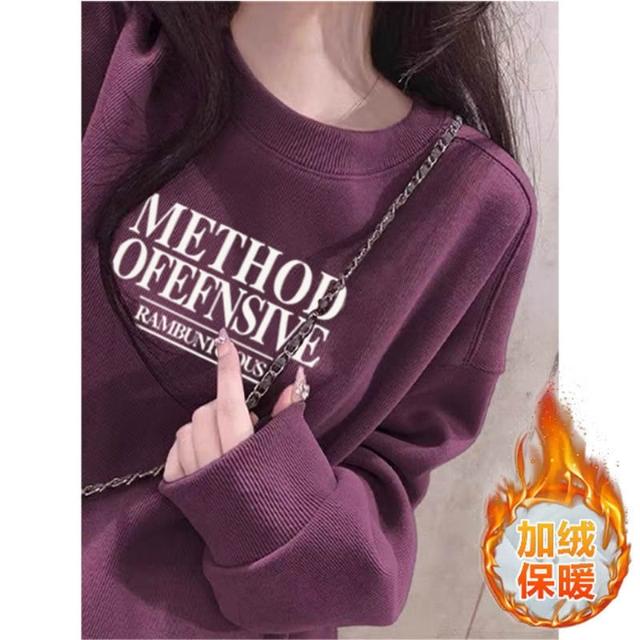 冬季加絨衛衣棉圓領淡紫色衛衣 大學女無帽25春秋季加絨加厚寬鬆慵懶風休閒上衣 保暖 加絨10241024 IJCN