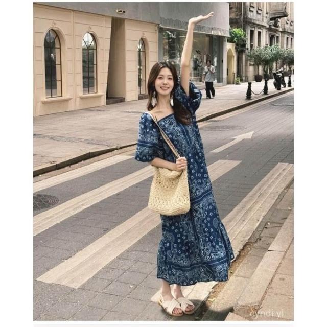 波米西亞風 波西米亞裙子長裙2025夏季複古新款民族風顯瘦印花寬鬆氣質連衣裙 氣質 韓版0622 686X