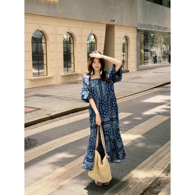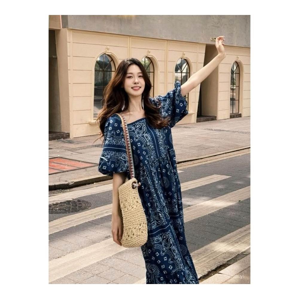 波米西亞風 波西米亞裙子長裙2025夏季複古新款民族風顯瘦印花寬鬆氣質連衣裙 氣質 韓版0622 686X