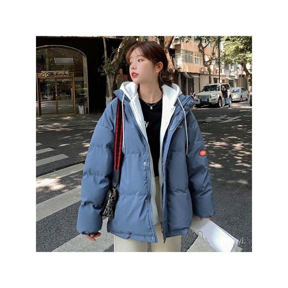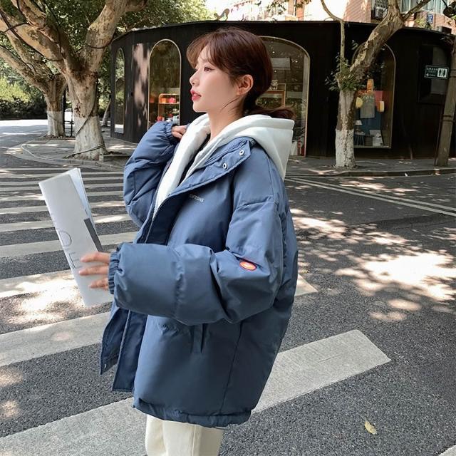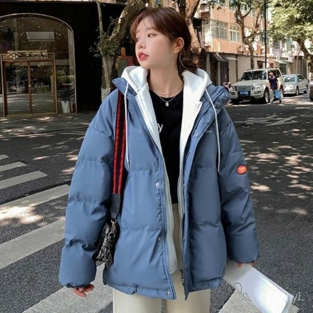 韓版棉服外套女 25冬季羽絨棉服女新款加厚韓版假兩件寬鬆連帽外套棉衣棉襖 保暖 麵包服1012