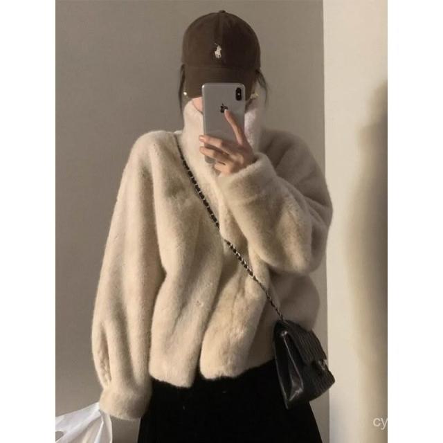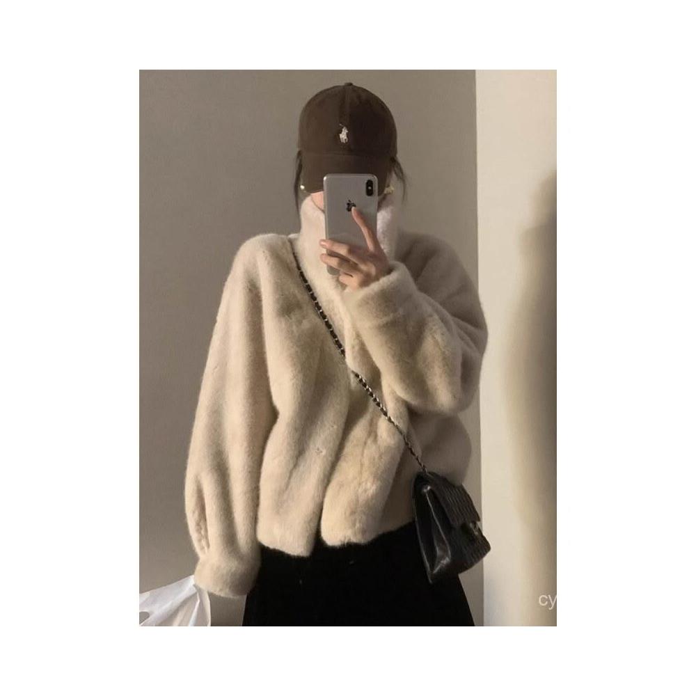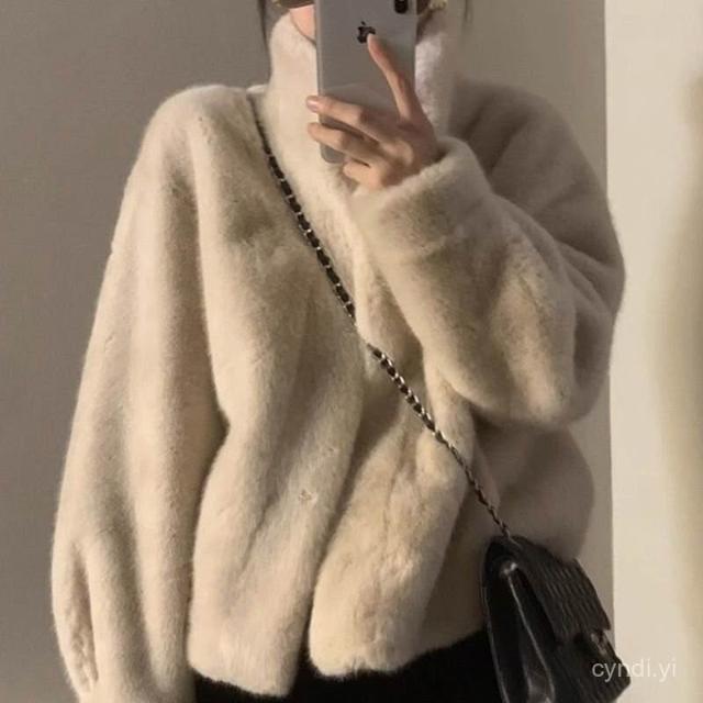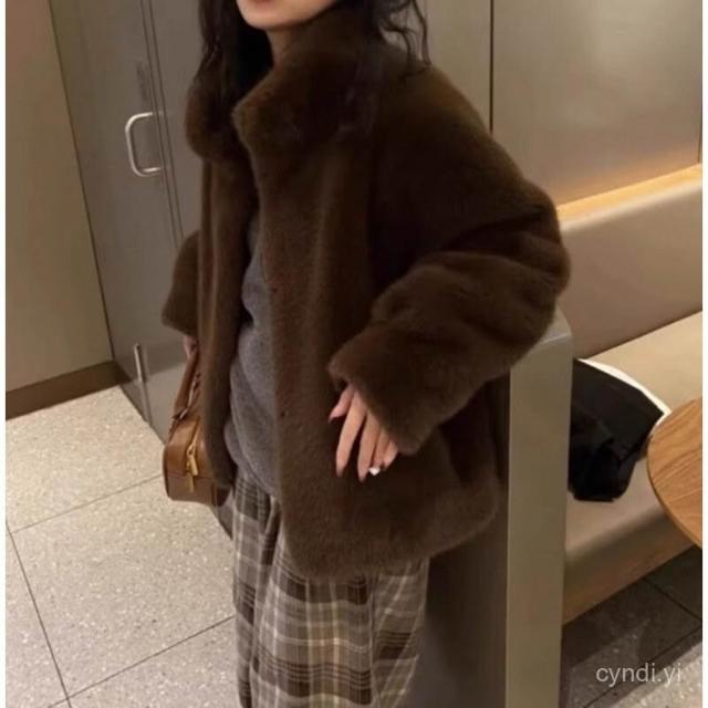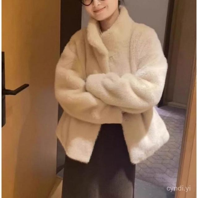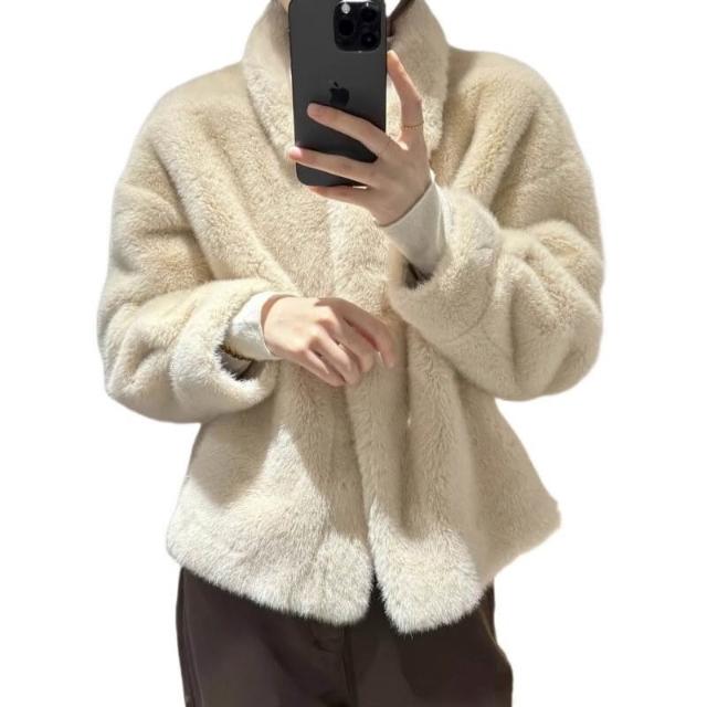 冬季水貂毛外套女 冬季年輕款仿貂皮短版立領保暖水貂毛毛絨環保皮毛毛外套女 皮草外套 毛絨外套1011