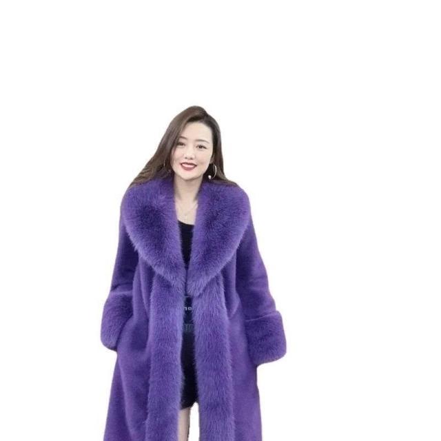 2024新款仿水貂毛皮毛一體大衣女仿狐貍毛領歐貂絨中長版海寧皮草 皮草外套女 毛毛外套 貂皮大衣 貂毛外套1205 JI