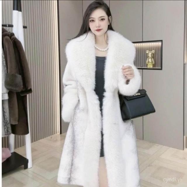 2024新款仿水貂毛皮毛一體大衣女仿狐貍毛領歐貂絨中長版海寧皮草 皮草外套女 毛毛外套 貂皮大衣 貂毛外套1205 JI