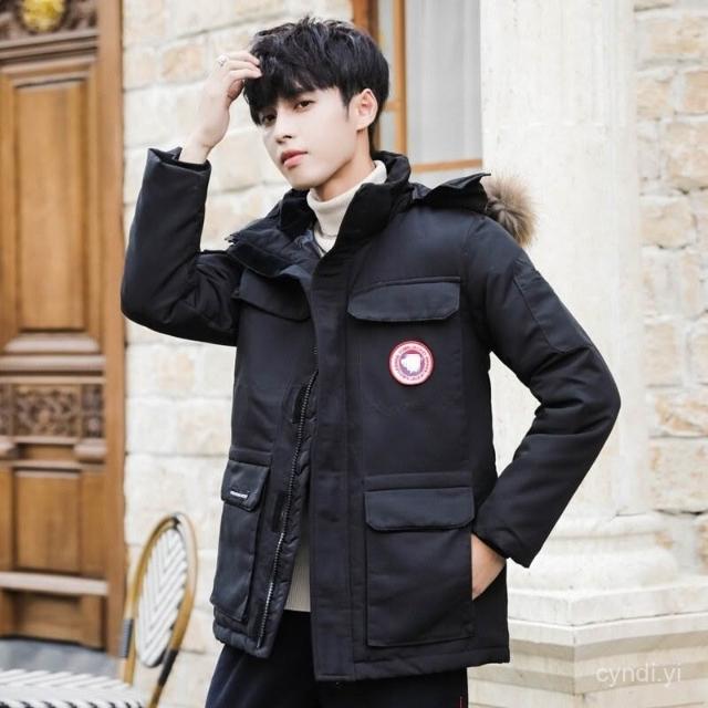 大尺碼冬天外套 新款羽絨服戶外男女中款歐美高端潮男白鴨絨加厚冬季外套 保暖 防風 羽絨外套連帽1113 PWRB