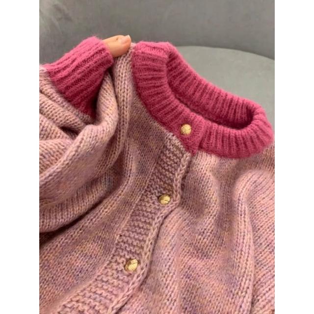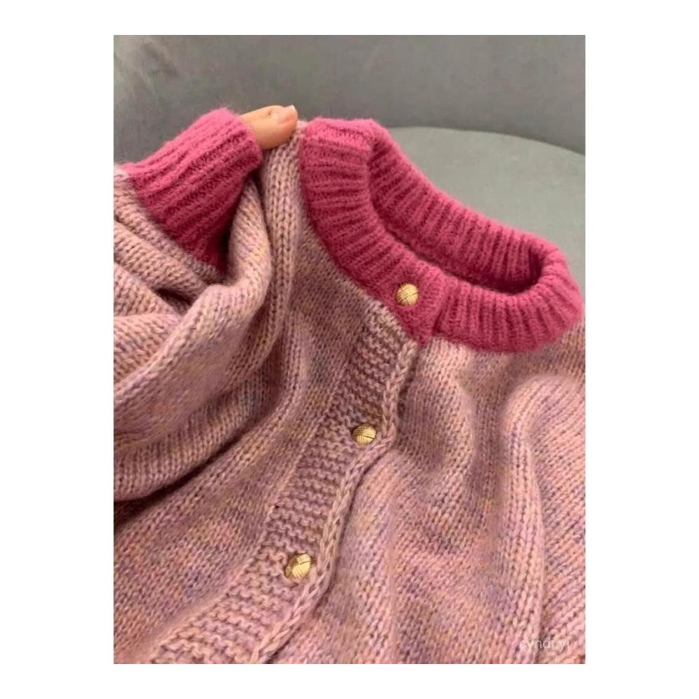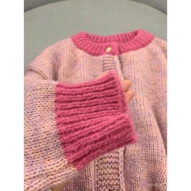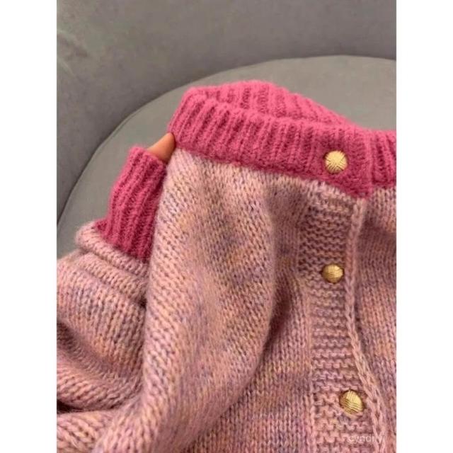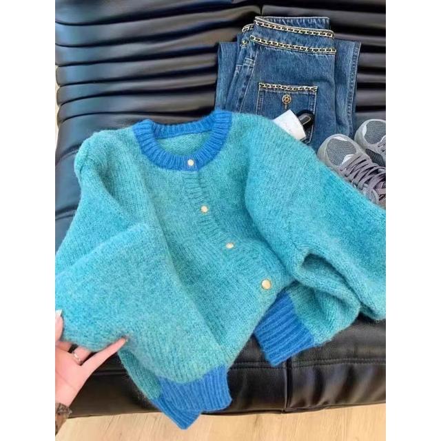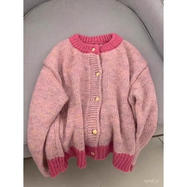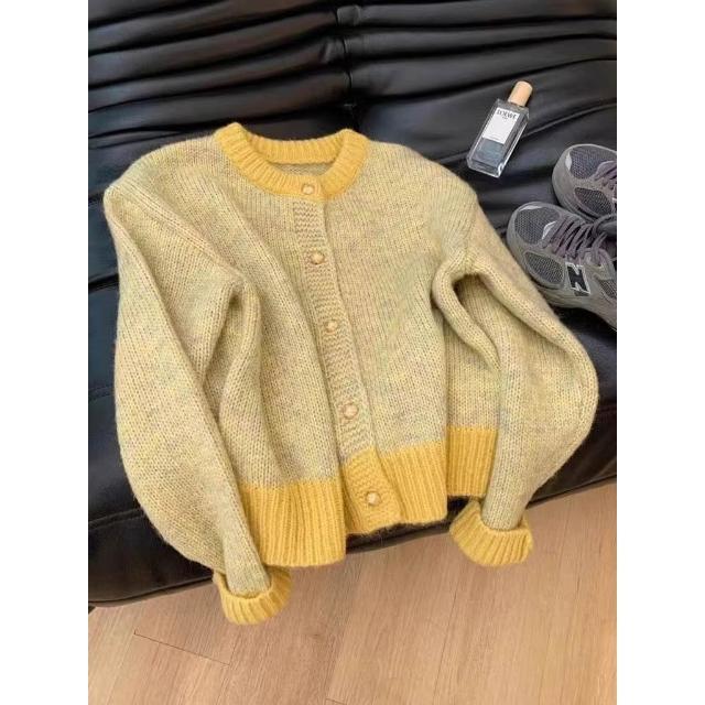 冬季 針織外套 毛衣開衫25新款秋季女裝韓版時尚法式小香風撞色短版針織衫上衣 慵懶風 外套 1014