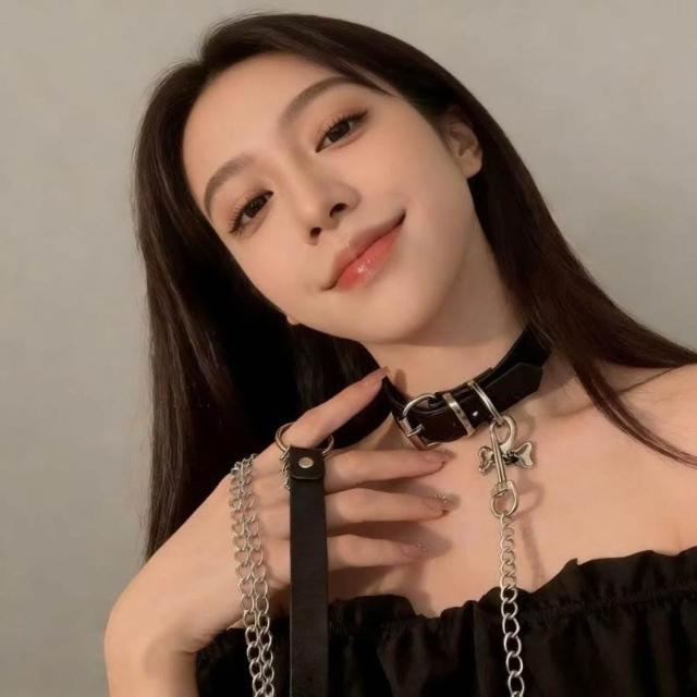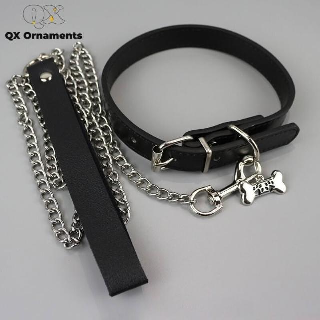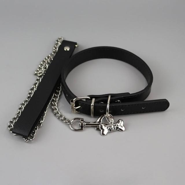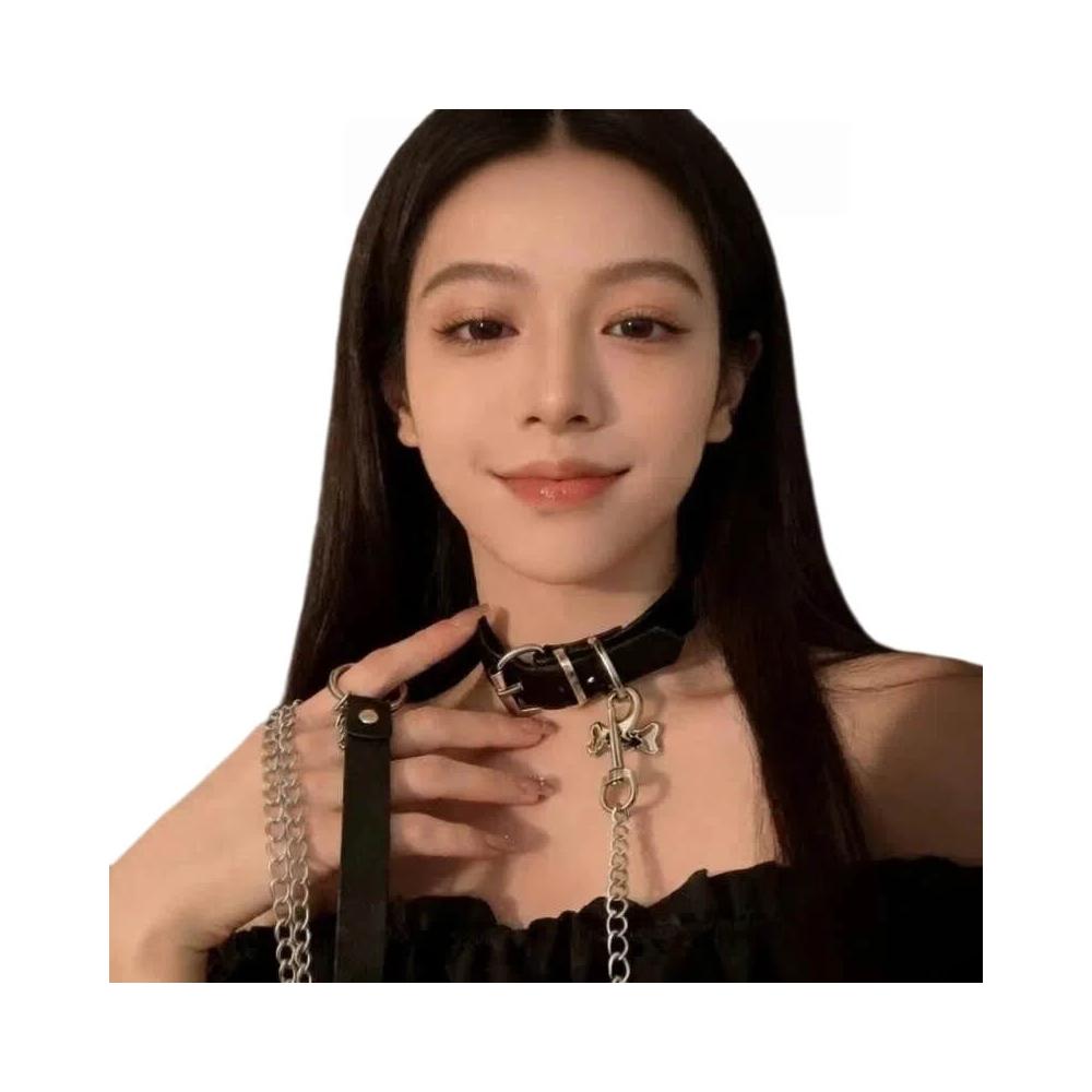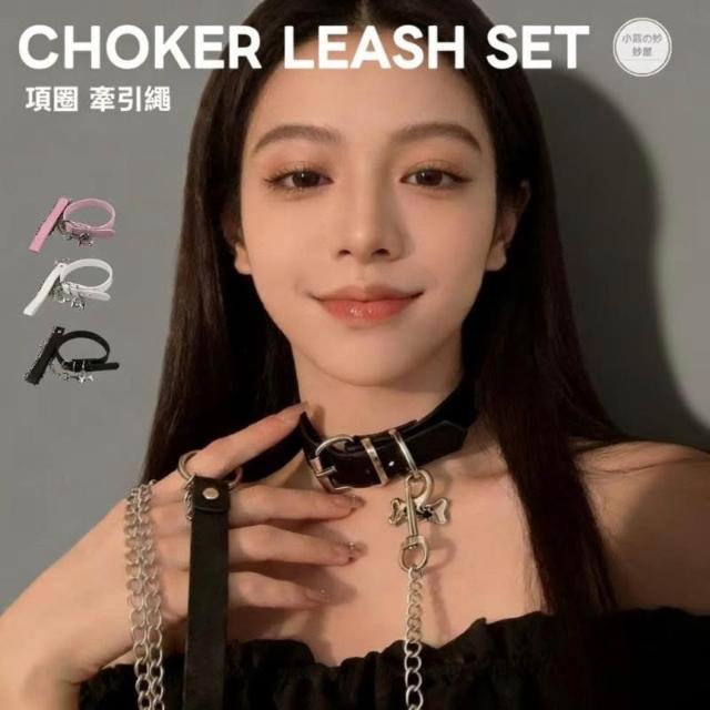 精選免運⚡️choker骨頭黑色項圈 頸帶牽引繩 脖子配飾 頸鏈情侶