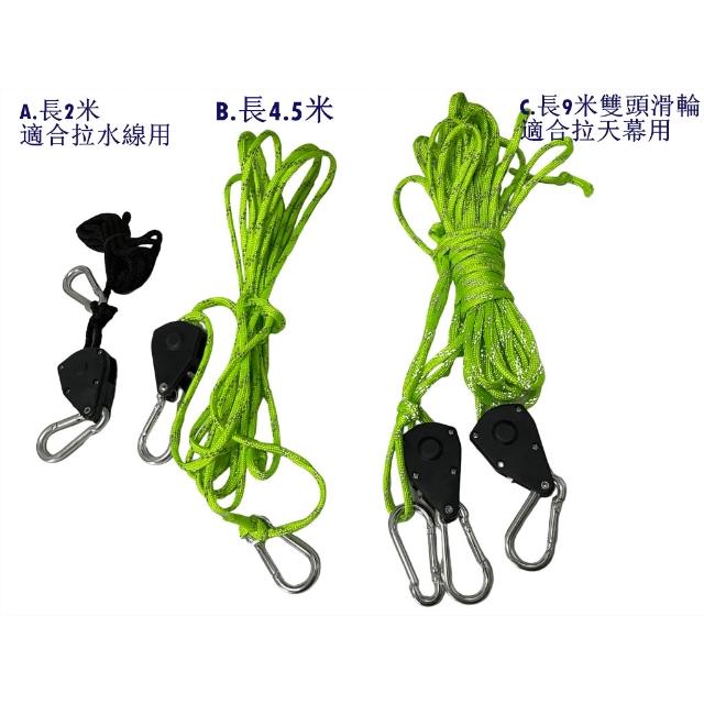 4MM營繩滑輪卡扣 滑輪吊繩 露營水線 天幕繩 露營曬衣繩 滑輪調節繩 滑輪可調繩 可調節承重式吊鉤