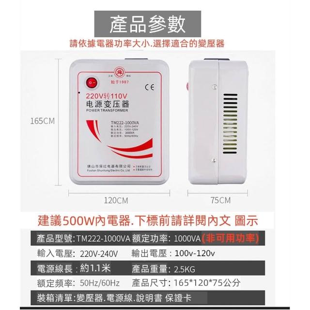 舜紅 1000w降壓器 1000W變壓器 220v插座110v電器用 台灣電器出國用