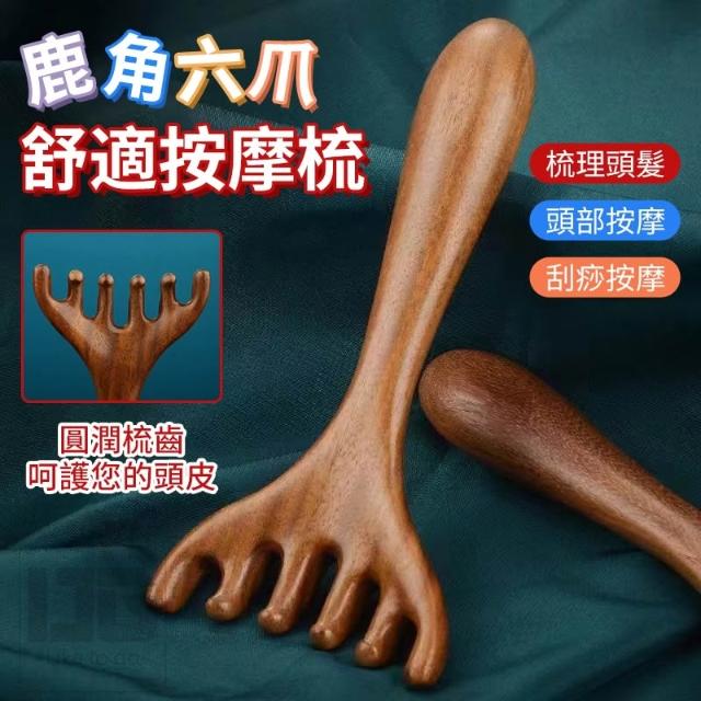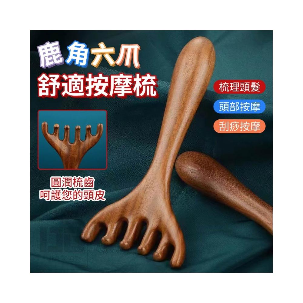 鹿角按摩梳 經絡刷 頭皮按摩 按摩梳 經絡梳 木經絡梳 頭皮按摩梳 六爪梳 頭部經絡梳 經絡按摩刷 臉部刮痧板