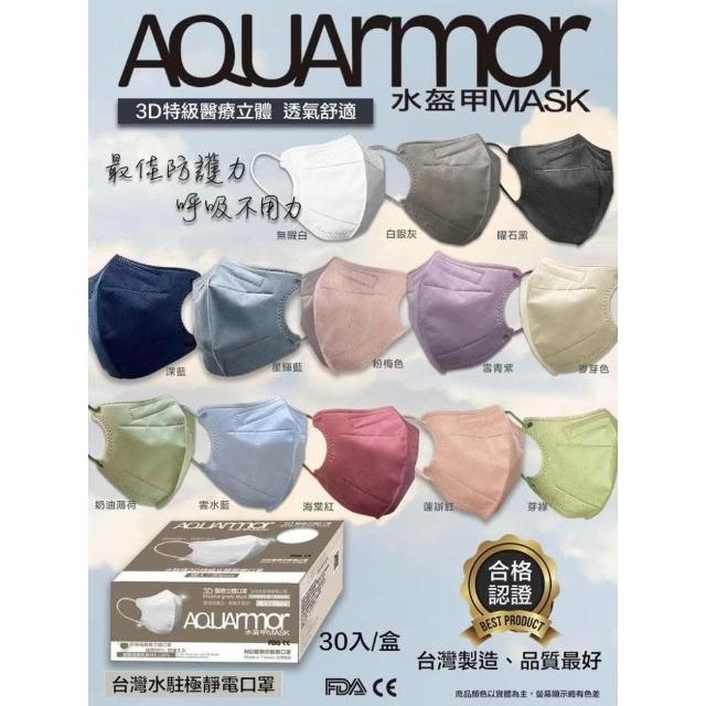 固材/凱上 水盔甲 AQUARMOR 3D立體醫療口罩 水駐極靜電口罩 台灣製 30入 多款 信男藥局