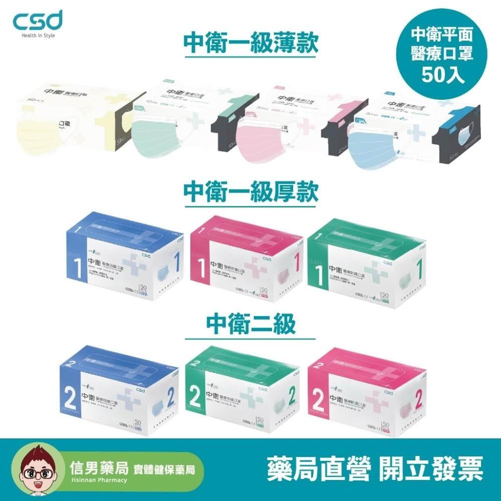 中 衛 成人平面 醫療口罩 二級 藍色 粉色 綠色 信男藥局