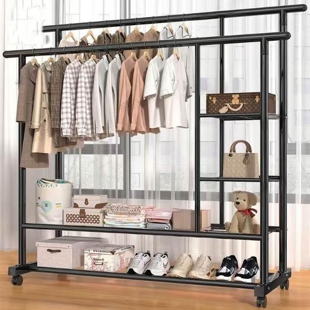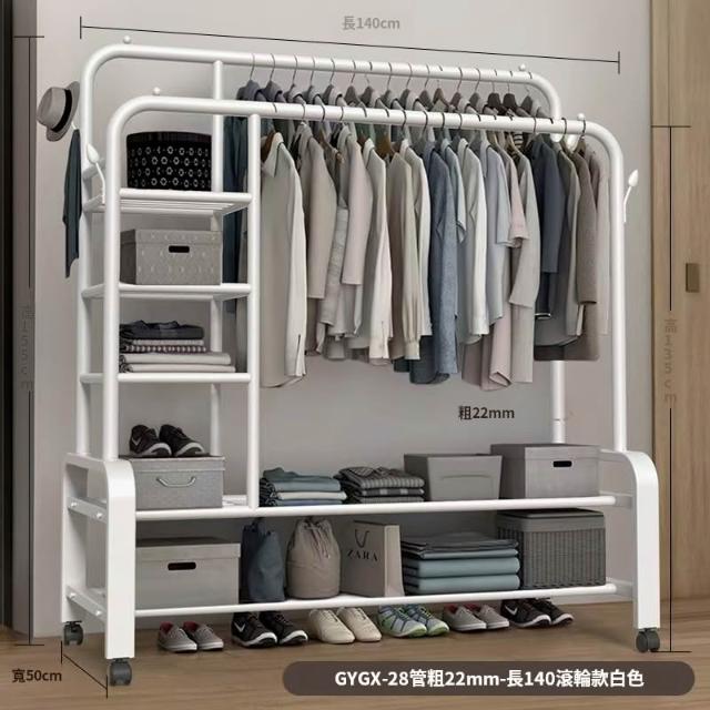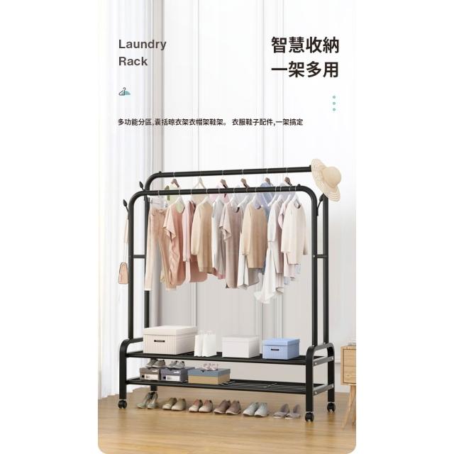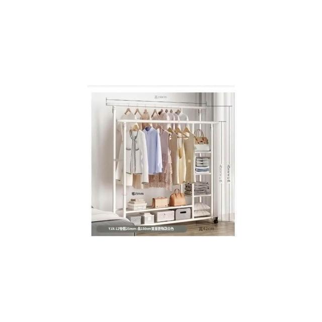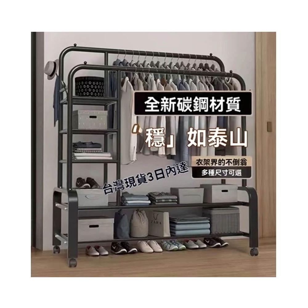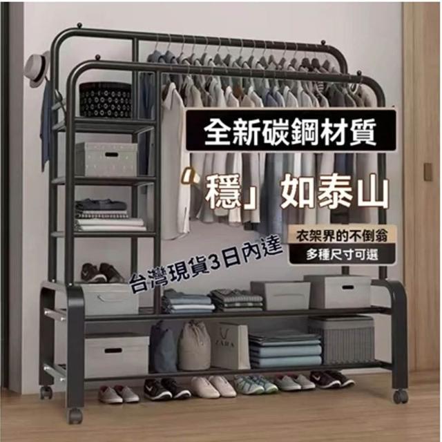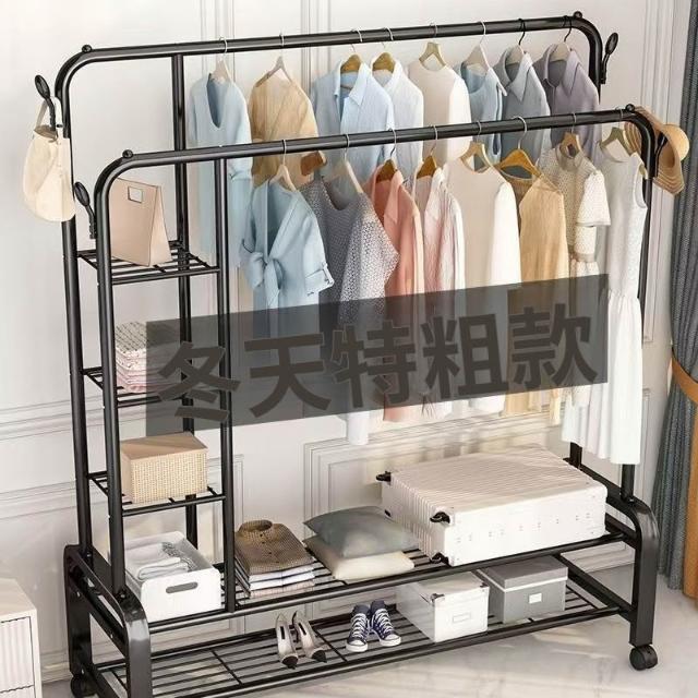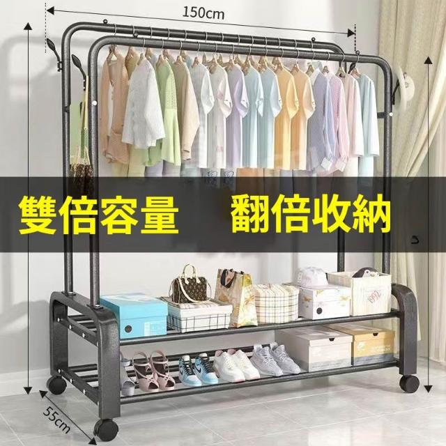 紅豆家居 臺灣現貨24H出落地掛衣架 雙桿衣架 加粗雙排晾衣架 可移動曬衣架帶輪掛衣架 臥室吊衣架多功能家用衣櫃