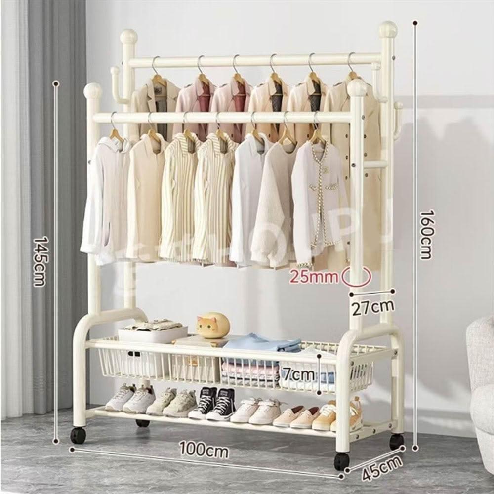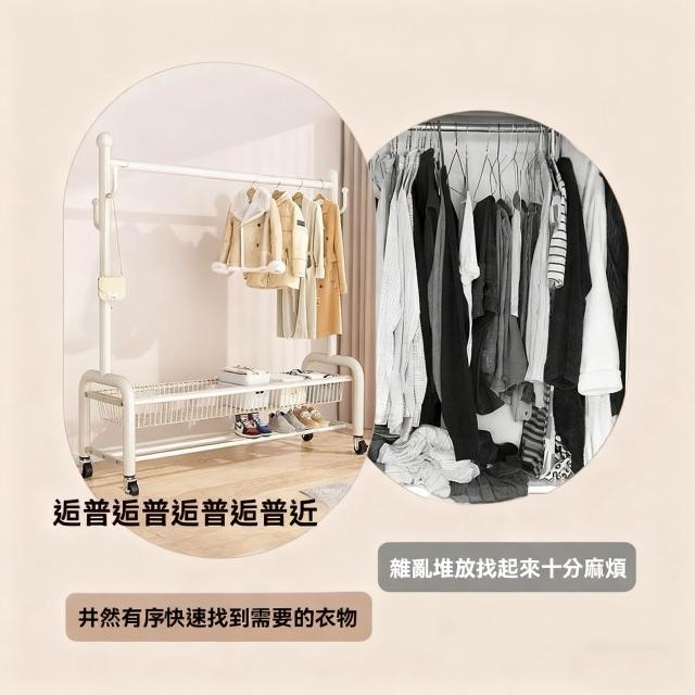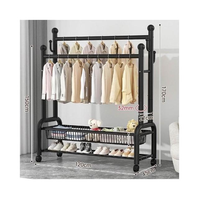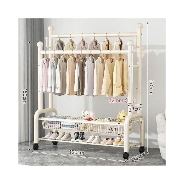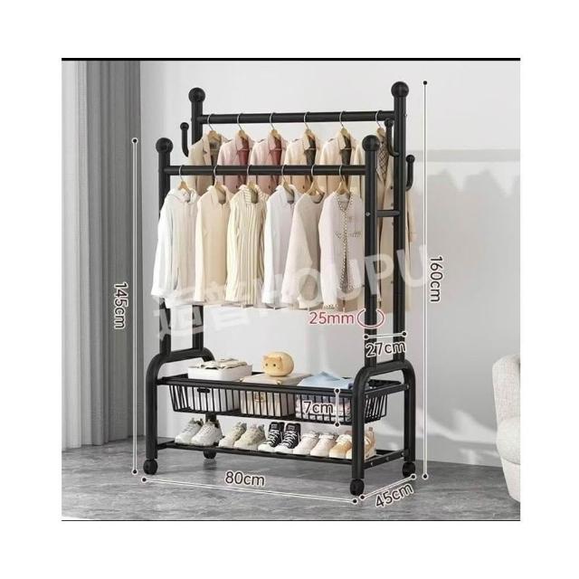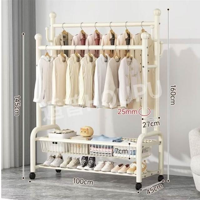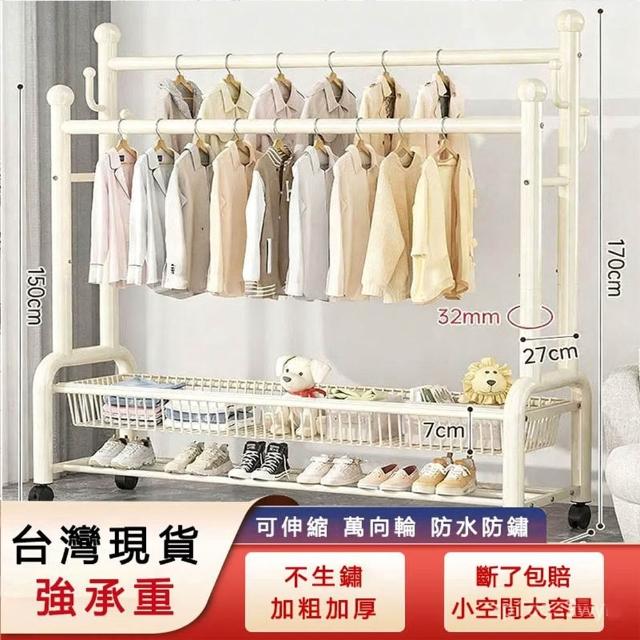 紅豆家居 臺南現貨 1-3日內達雙層衣帽架 落地晾衣架 傢用落地臥室不佔空間 簡易晾衣架子 室內衣架 衣架雙桿衣架