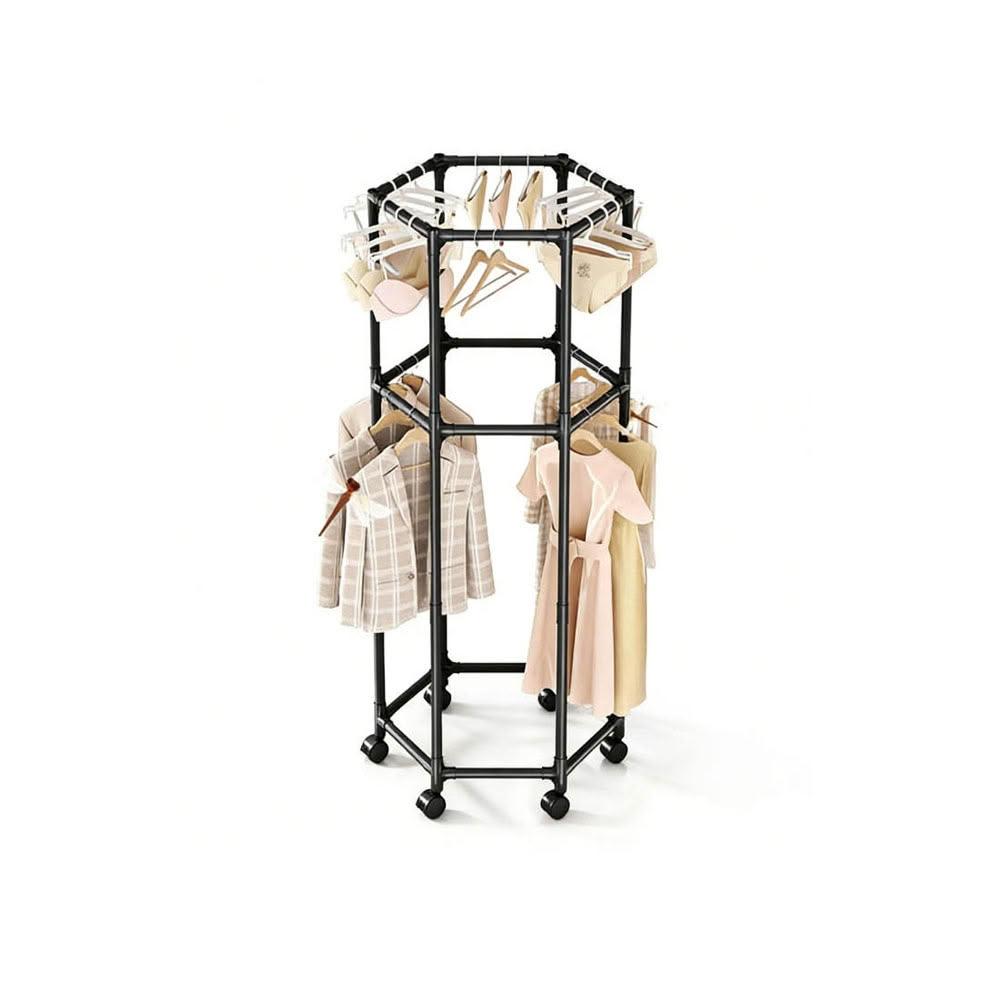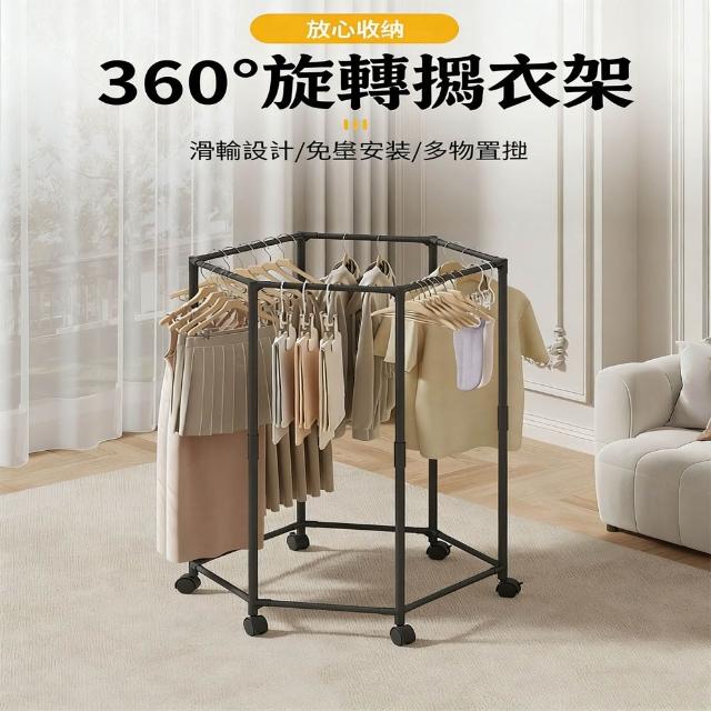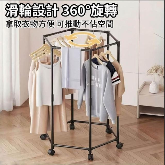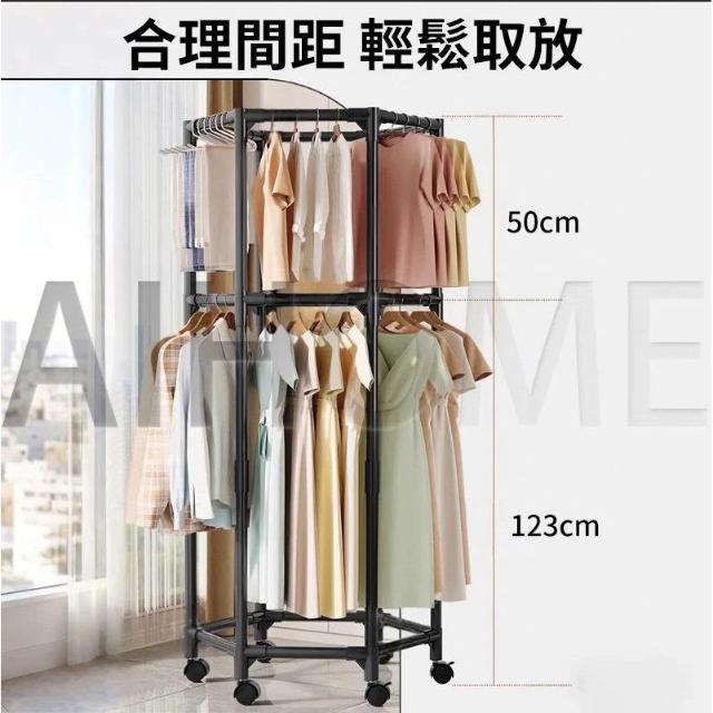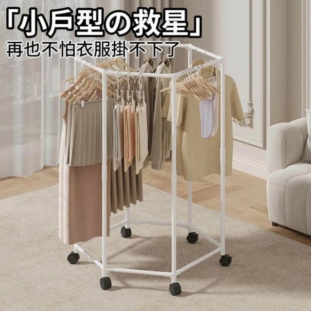 紅豆家居 臺灣現貨1-3日內達升級款六邊型旋轉落地衣架 滑輪衣架 曬衣架 衣架 晾衣架 掛衣架 衣帽架 曬衣架