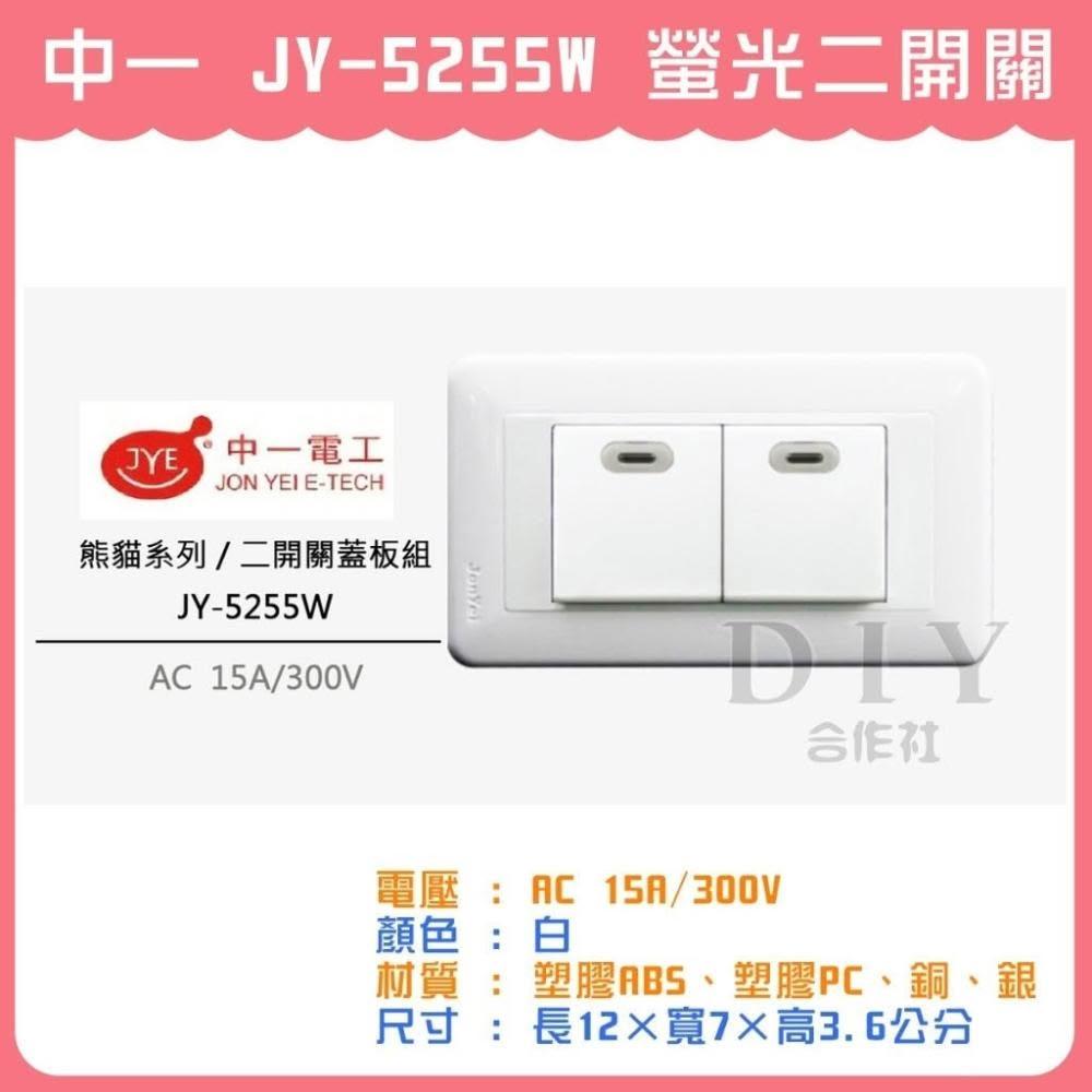 DIY合作社 中一電工 JY-5255W 熊貓系列 白色 螢光二開關