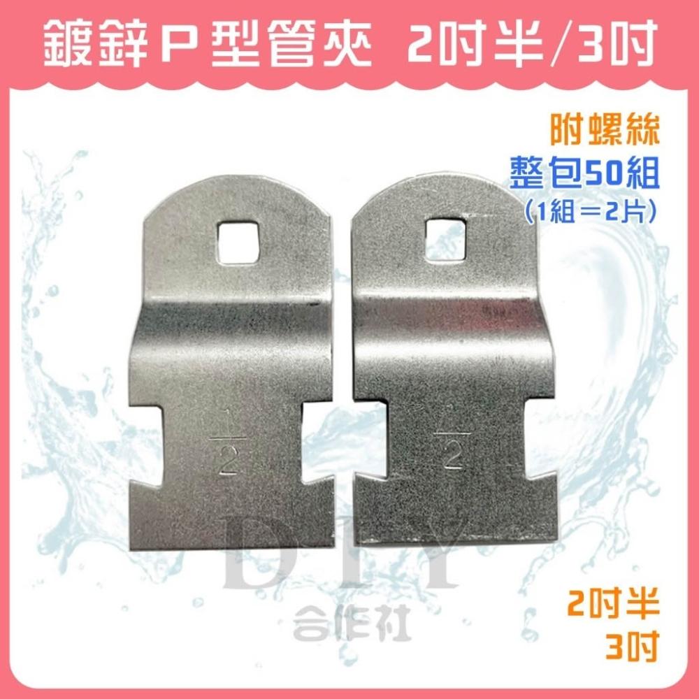DIY合作社 鍍鋅P型管夾 管束 附螺絲 2吋半 3吋 整包50組