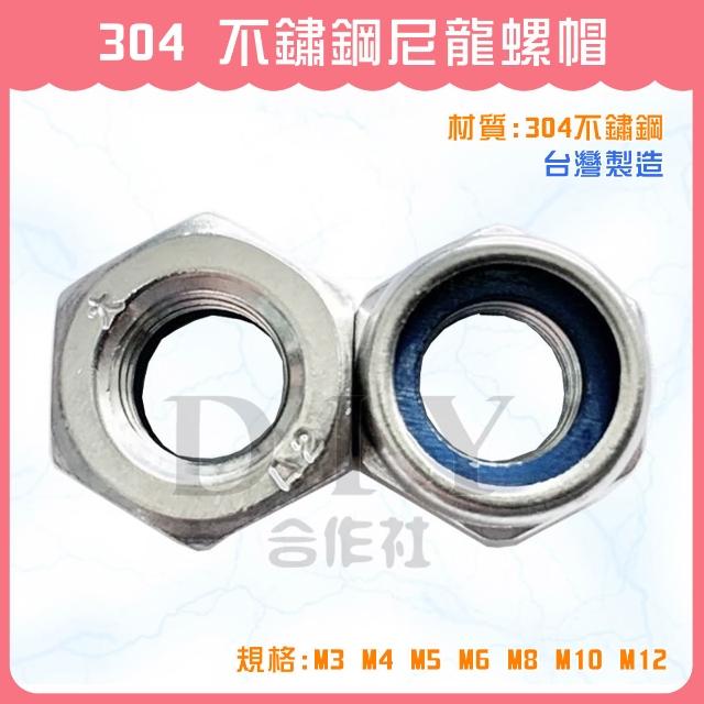 DIY合作社 白鐵尼龍螺帽 304不銹鋼尼龍螺帽 M3 M4 M5 M6 M8 M10 M12 六角螺帽