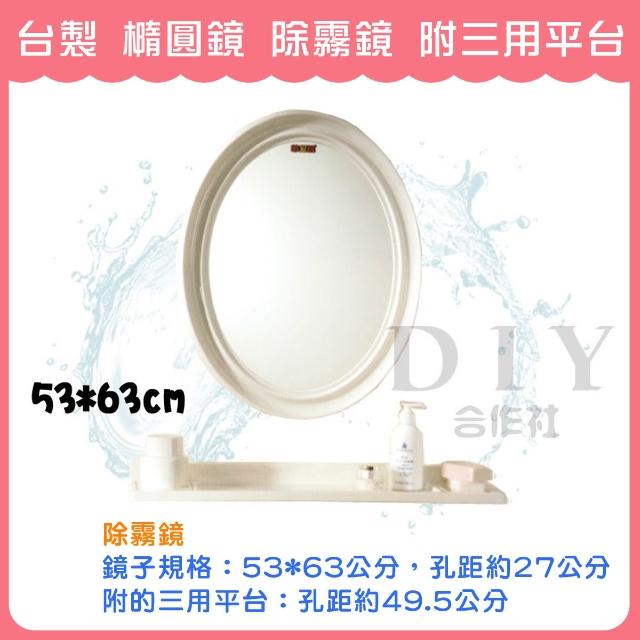 DIY合作社 台灣製造 橢圓鏡 除霧鏡 附三用平台 明鏡 鏡子 衛浴鏡