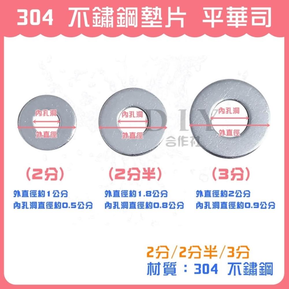 DIY合作社 白鐵墊片 304不鏽鋼墊片 華司 2分 2分半 3分