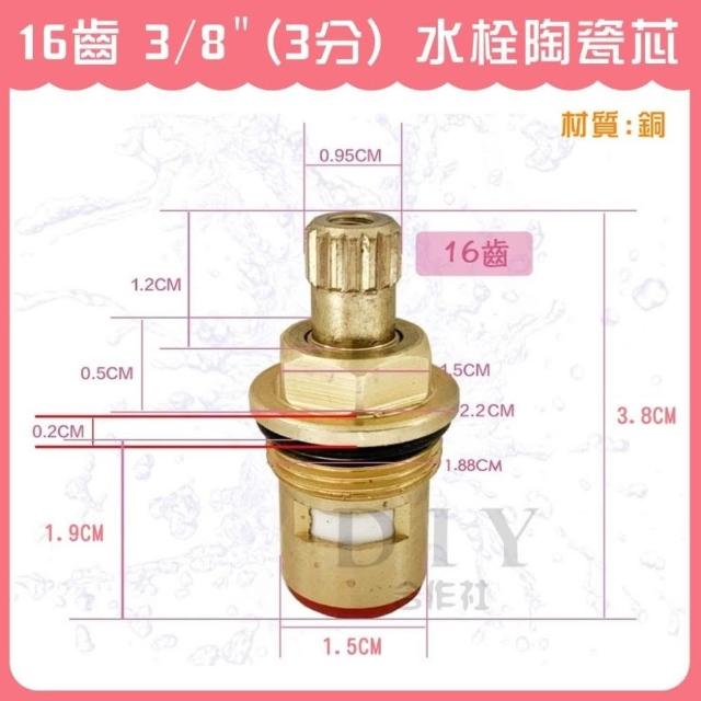 DIY合作社 台灣製 銅閥芯 16齒 3/8 (3分) 水栓 陶瓷芯 陶瓷閥芯 陶瓷軸芯 一般水龍頭栓用