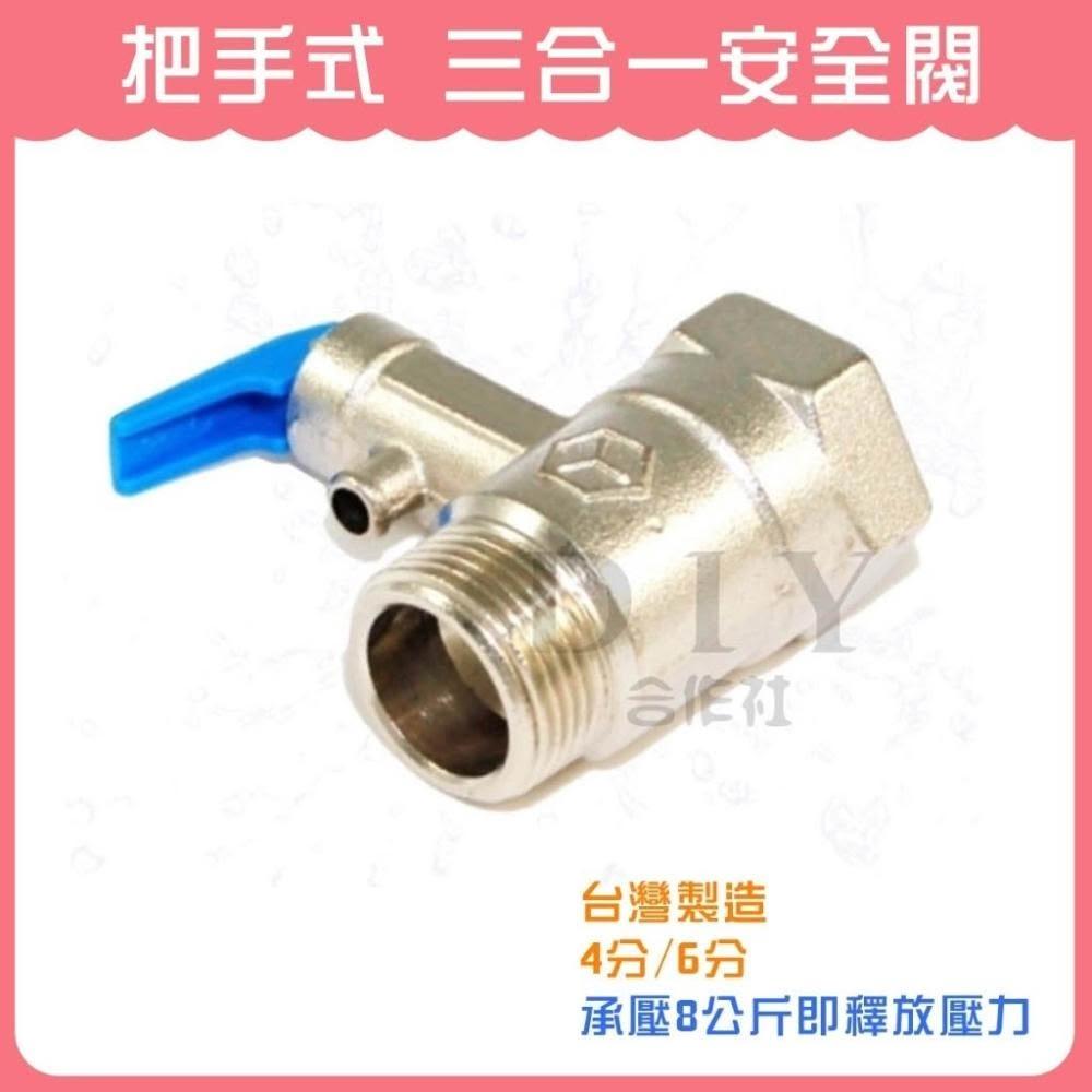 DIY合作社 把手式 三合一安全閥 逆止洩壓閥 電熱水器專用逆止洩壓閥 熱水器逆止閥 4分 6分 台灣製造