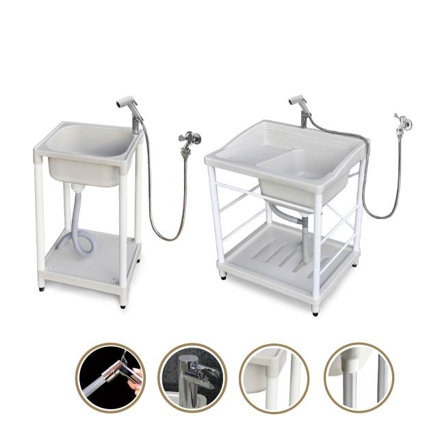 KB+ 日系塑鋼洗衣槽 A款 附二段沖洗組(2尺寸・2種腳架可選)|浴室 陽台 洗衣 水槽 洗手槽 洗衣台 行動水槽