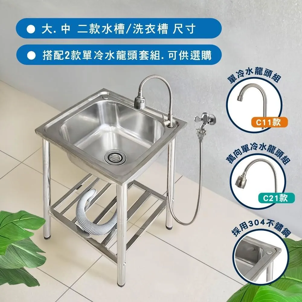 KB+ 高品質不鏽鋼水槽 C款 附單冷水龍頭(2尺寸可選)|浴室 陽台 不鏽鋼水槽 單槽 不鏽鋼槽 行動水槽