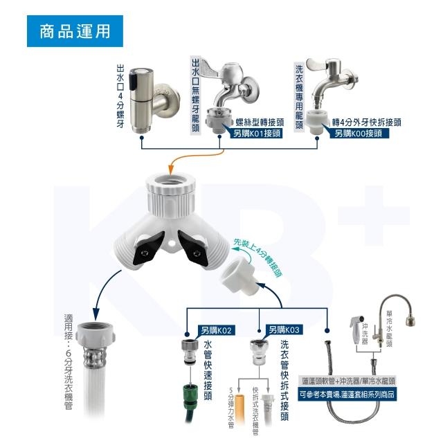 KB+ 水龍頭用 Y型開關三通 5518-32|雙開關獨立控水|4分 6分牙通用|可接洗衣機 蓮蓬頭軟管 各式水管