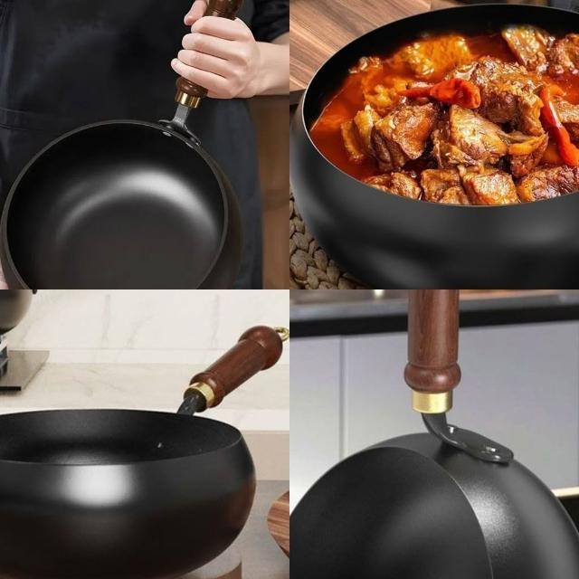 章丘 正宗 大肚 锅 手工 家用 纯铁锅 锻打 无涂层 不粘锅 炒锅 炒菜锅 新款