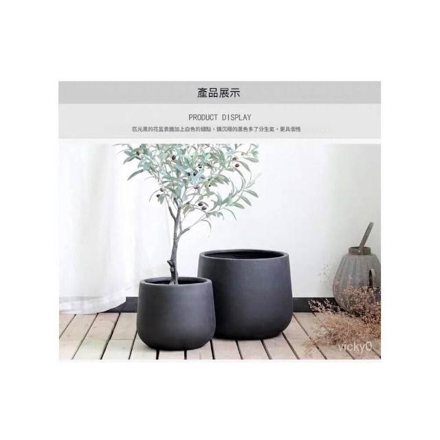 北歐特大號落地花盆 庭院花園大型植物種小樹圓形黑色水泥花盆