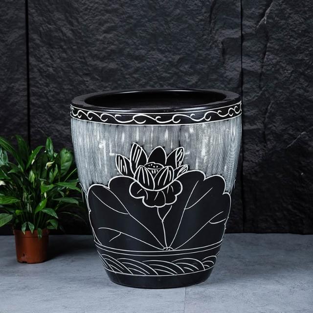加高復古陶瓷大缸古法魚缸客廳陽台落地庭院老式大水缸睡蓮荷花缸