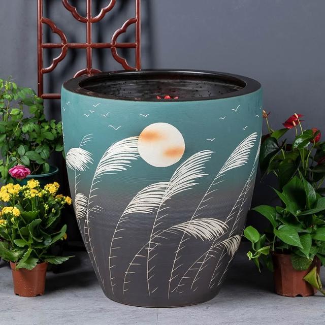 加高復古陶瓷大缸古法魚缸客廳陽台落地庭院老式大水缸睡蓮荷花缸