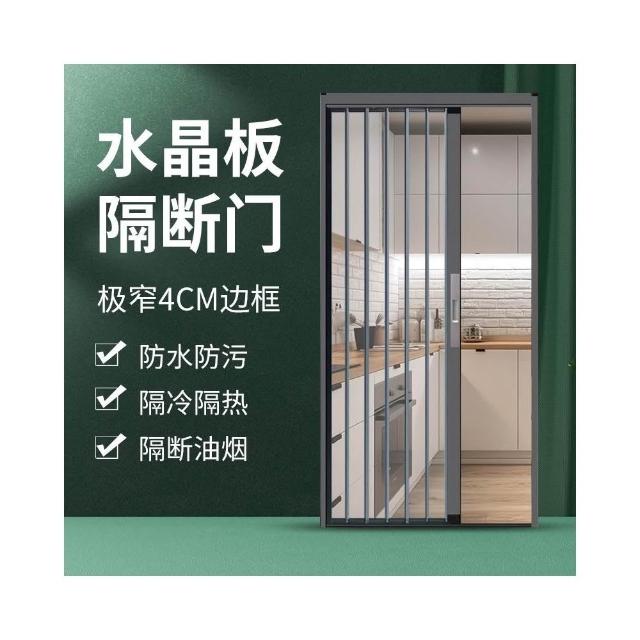 鋁合金透明水晶板門 亞克力摺疊推拉門 隱形廚房門 卧室內空調隔斷 免打孔