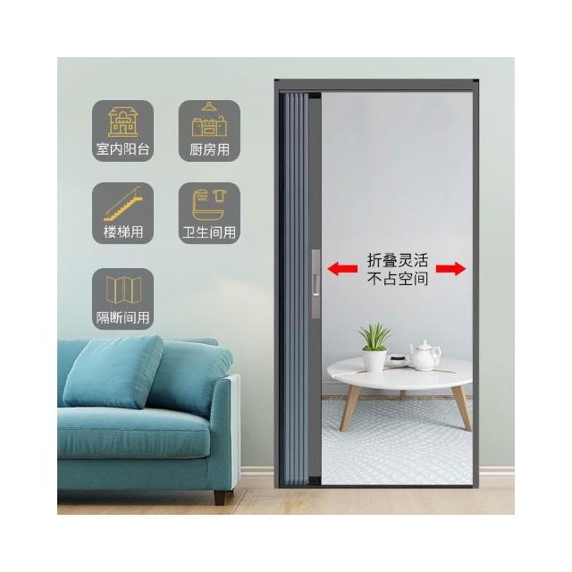 鋁合金透明水晶板門 亞克力摺疊推拉門 隱形廚房門 卧室內空調隔斷 免打孔