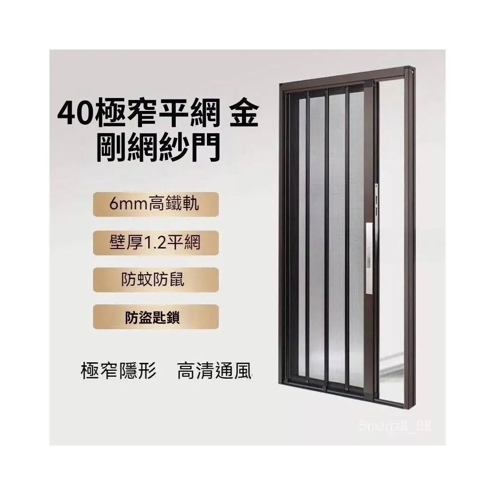 極窄180度平網 推拉式金剛網紗門 隱形折疊門 鋁合金防盜窗門 防蚊防鼠防貓狗紗門