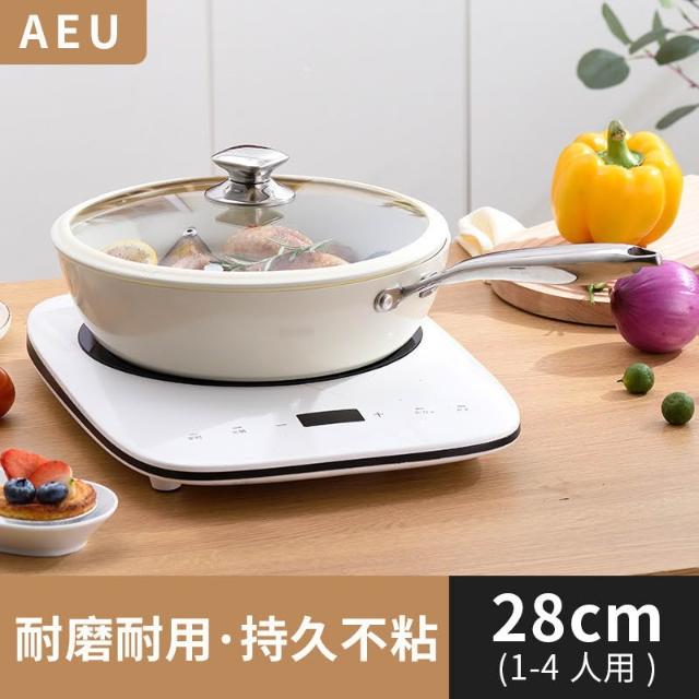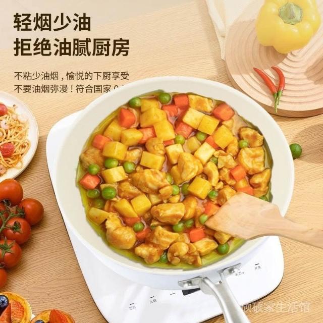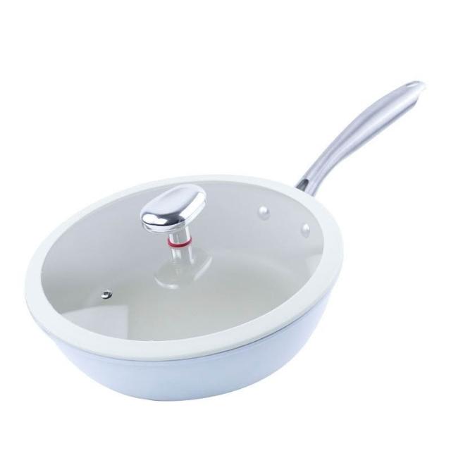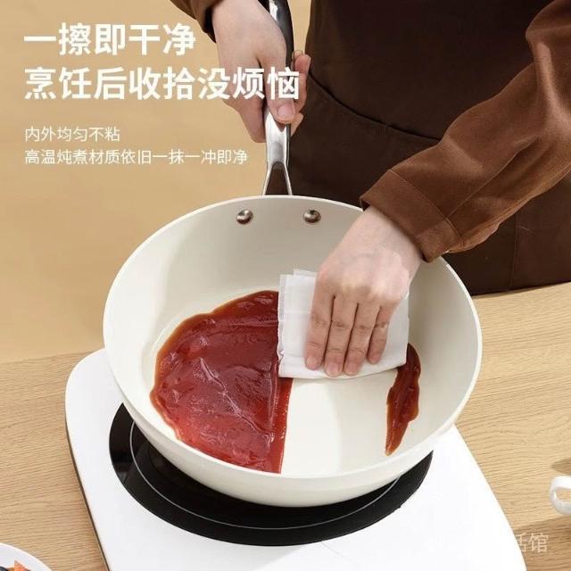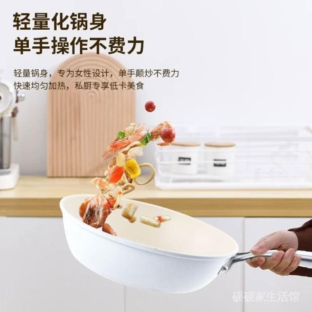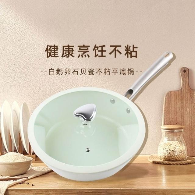 貝殼瓷煎炒鍋白鵝卵石不粘平底鍋家用廚房精鐵炒菜鍋可批發