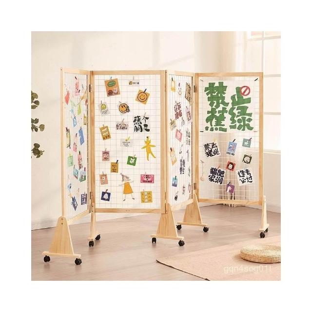 展示架落地式幼兒園美術作品展架實木可移動屏風隔斷網格展示架