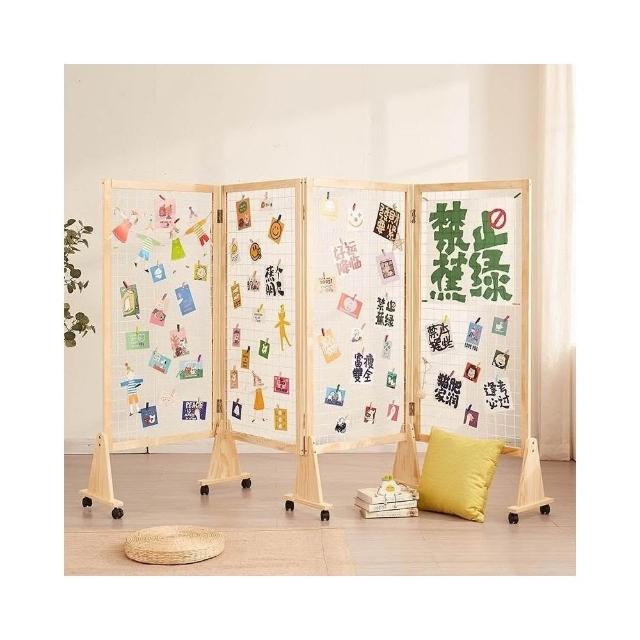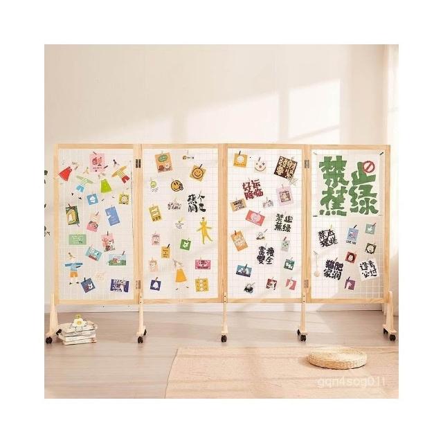 展示架落地式幼兒園美術作品展架實木可移動屏風隔斷網格展示架