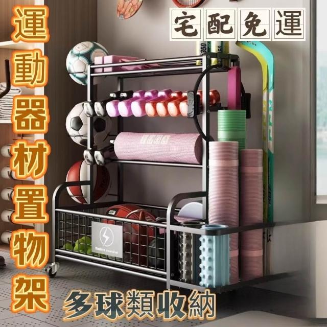 運動器材置物架 宅配免運 籃球球類收納架 瑜伽墊收納筐 健身器械體育用品工具收納籃 小型落地多功能置物架