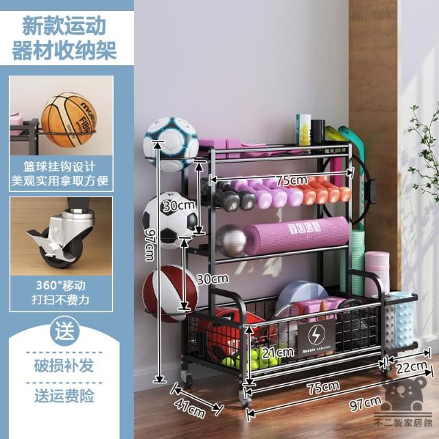 運動器材置物架 宅配免運 籃球球類收納架 瑜伽墊收納筐 健身器械體育用品工具收納籃 小型落地多功能置物架