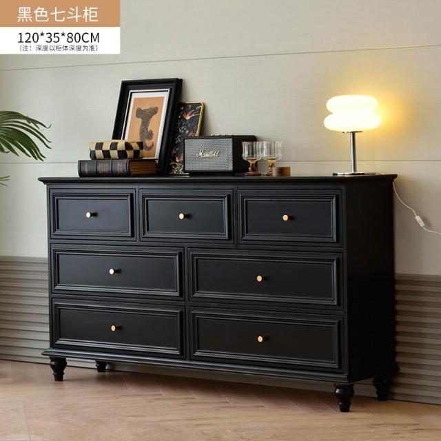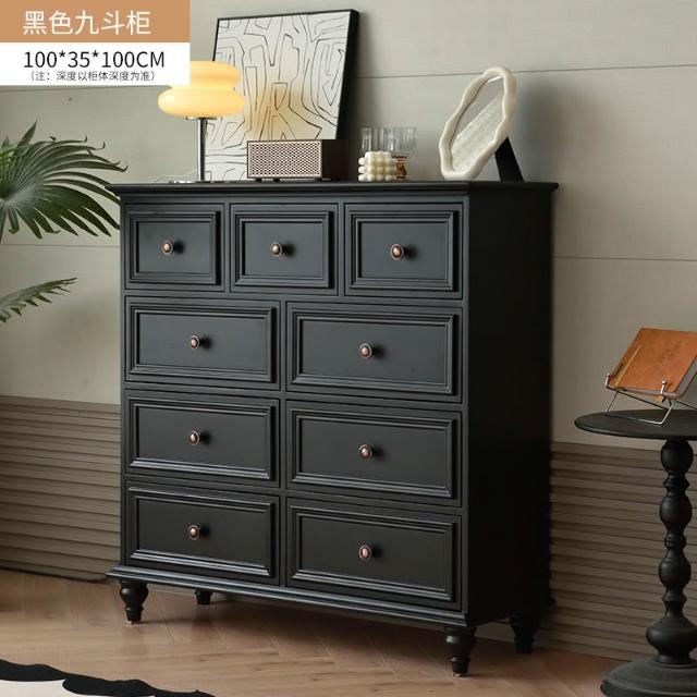 收納櫃 邊櫃 斗櫃 美式實木斗柜臥室黑色簡約抽屜柜子靠墻輕奢立櫃床尾收納櫃客廳