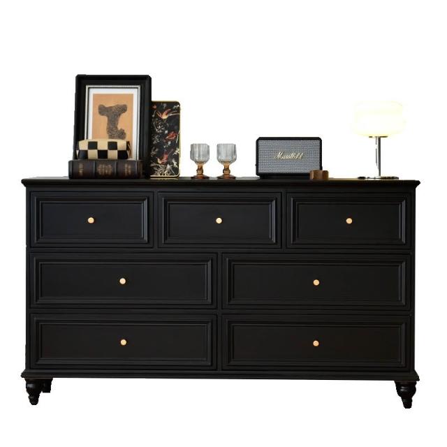 收納櫃 邊櫃 斗櫃 美式實木斗柜臥室黑色簡約抽屜柜子靠墻輕奢立櫃床尾收納櫃客廳