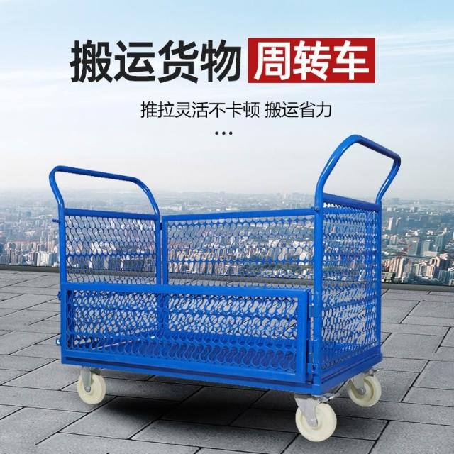 手推車板車網格搬運車圍欄周轉車拉貨擺攤小推車多功能摺疊車