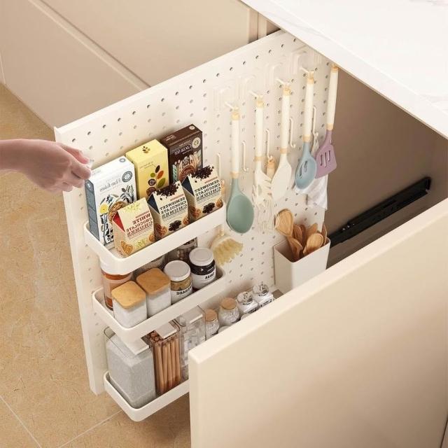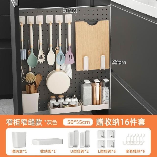 洞洞板廚房置物架 窄櫃 推拉滑軌櫥櫃 側拉櫃內抽拉式冰箱夾縫收納櫃