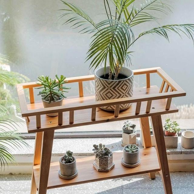 實木花架 裝飾架 花盆置物收納架 松木雙層落地客廳陽臺盆景架子